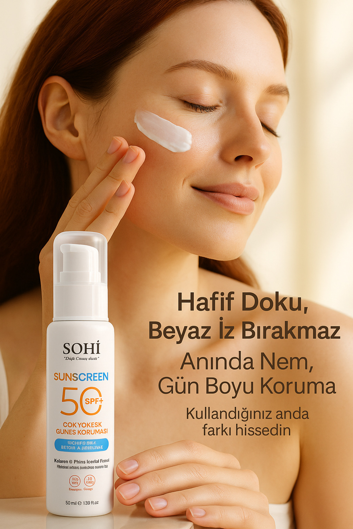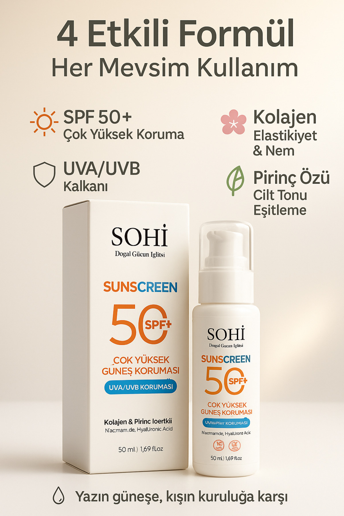 SPF 50+Güneş Kremi | Porselen Dokunuş | Pirinç Özü, Kolajen & Niacinamide & Hyaluronik Asit