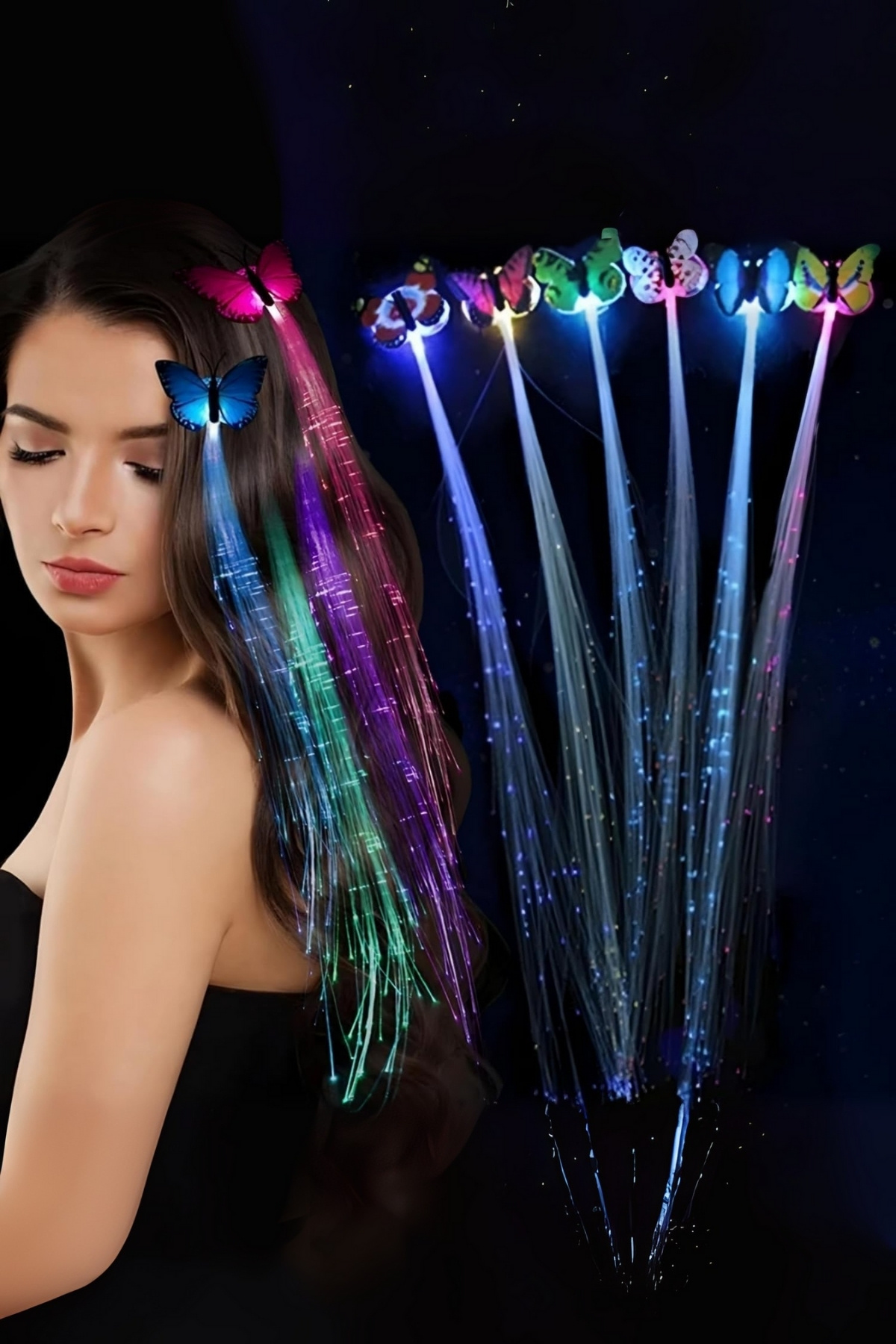 Parlayan LED Fiber Optik Kelebek Toka Saç Klipsi 1 Adet