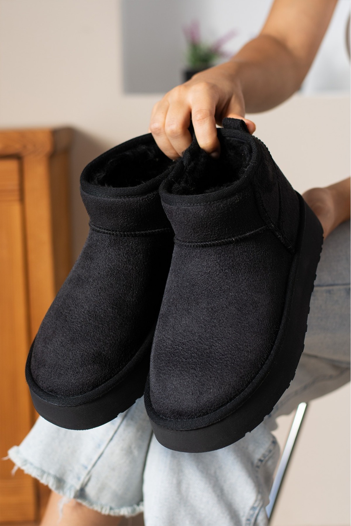 - Kış aylarında ayaklarınızı sıcak tutacak içi kürklü süet malzeme ile tasarlanmıştır.