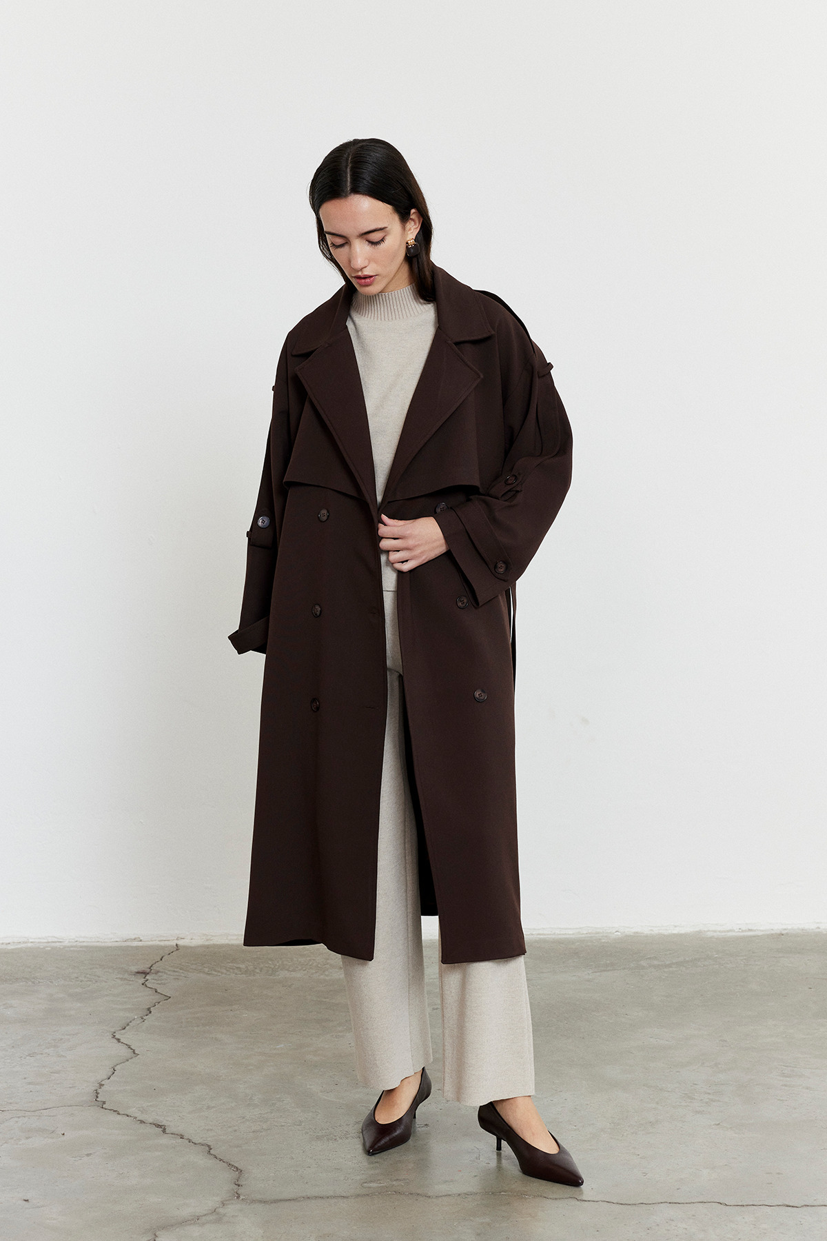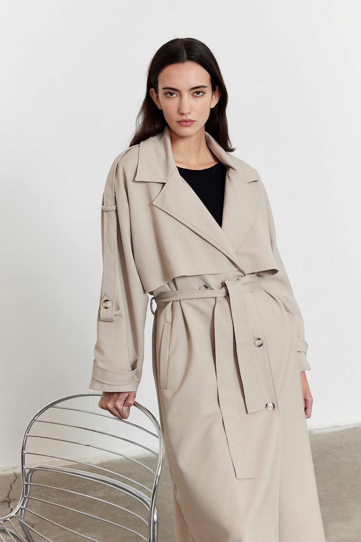 - Standart boy kesimiyle her vücut tipine uyum sağlayan oversize trençkot, rahatlığı ve şıklığı bir arada sunar.