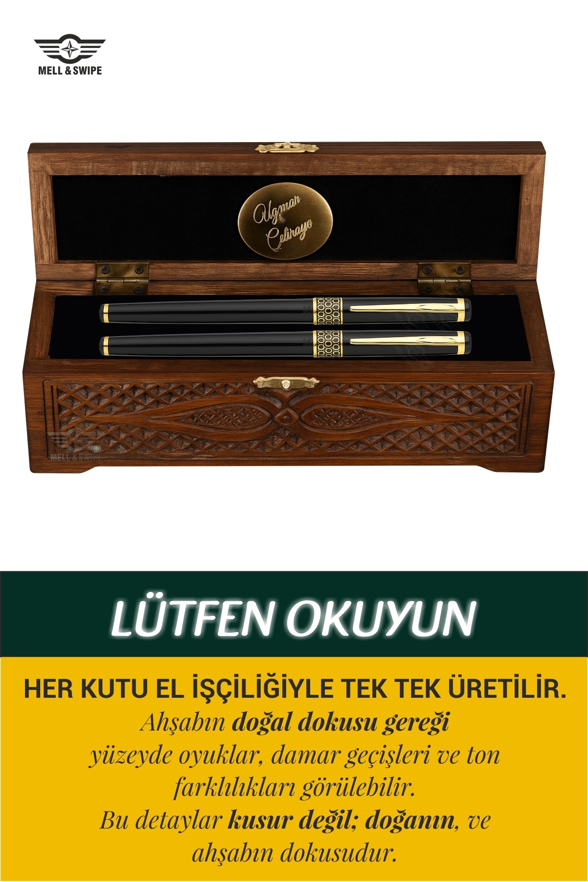 - Ahşap oyma kutusu, şıklığı ve dayanıklılığı bir arada barındırarak kalem setinizi korur.