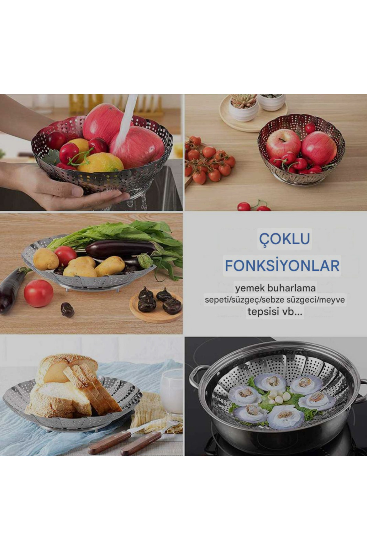 Paslanmaz Çelik Katlanabilir Buharda Pişirme Sebze ve Yemek Sepeti
