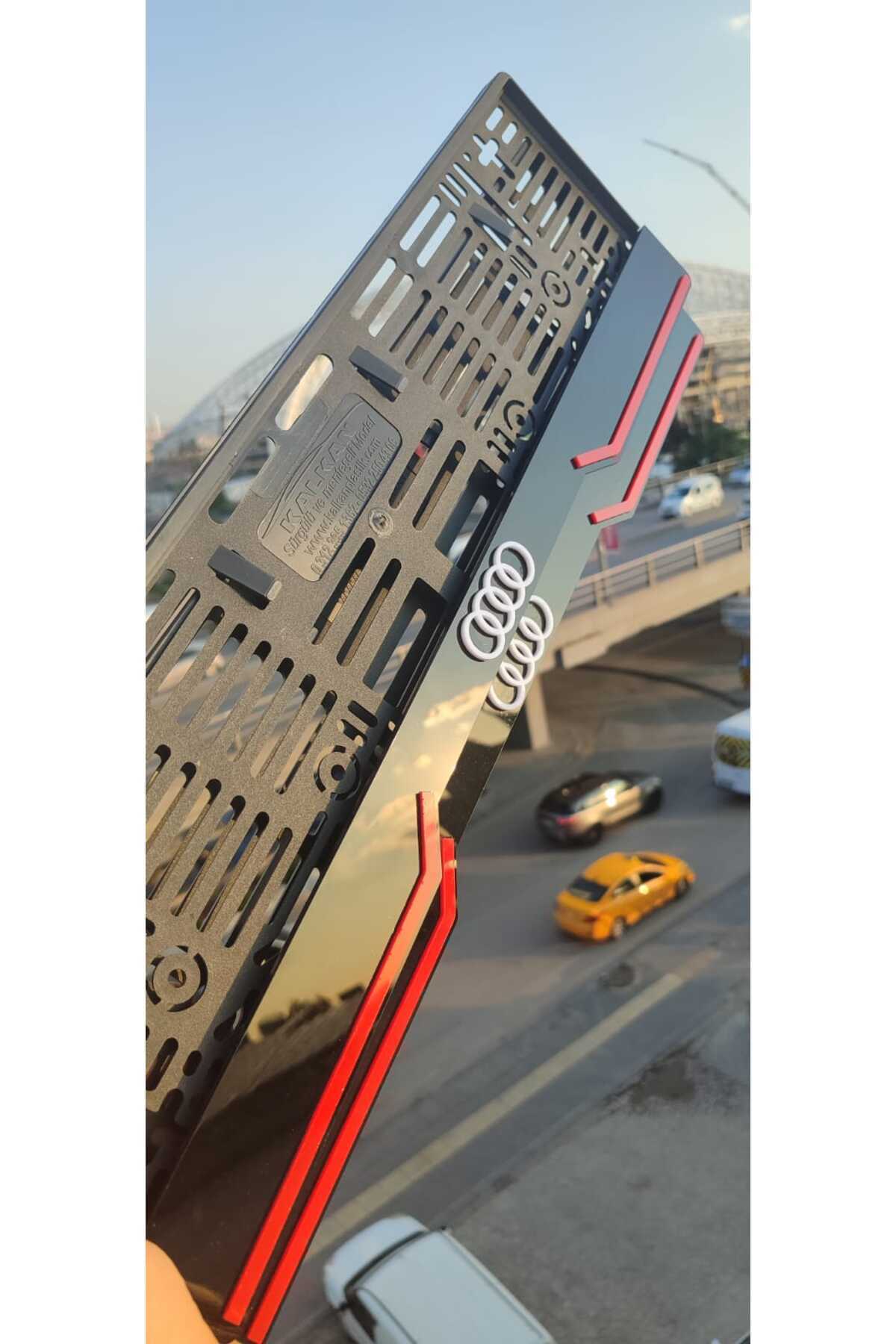 - Audi model araçlarınız için özel olarak tasarlanmış, renk değiştirme özelliği sayesinde farklı sürüş koşullarına uyum sağlayan kırmızı çizgili pleksi plakalık.
