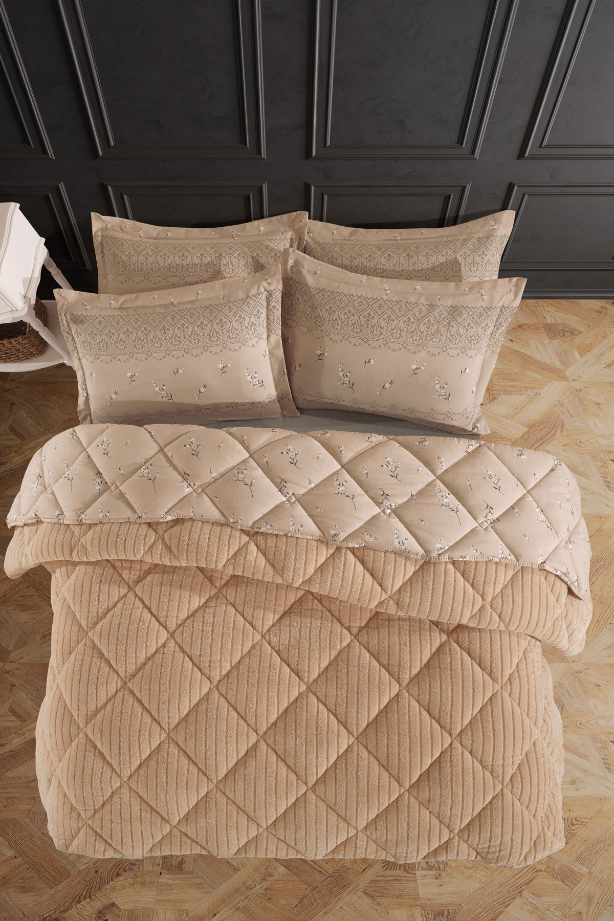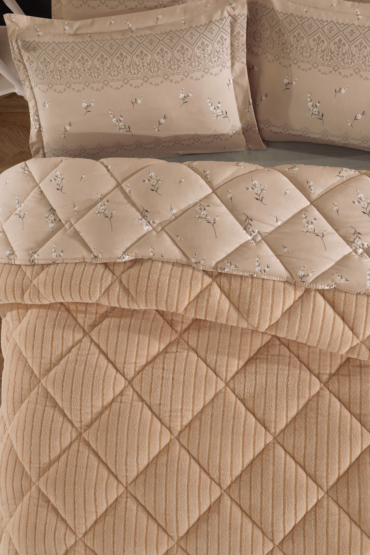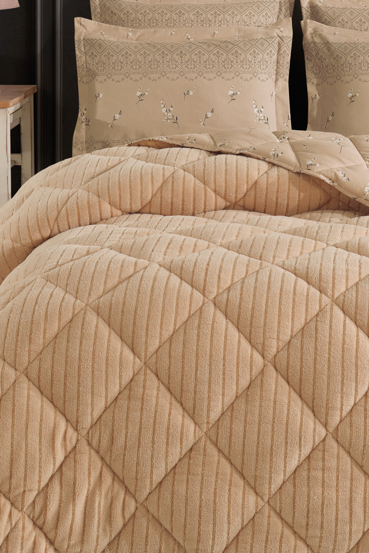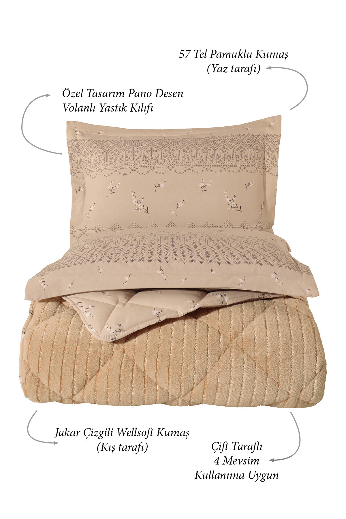 Striped Jakarlı Wellsoft Çift Kişilik Uyku Seti Lastikli Çarşaflı 4 Parça