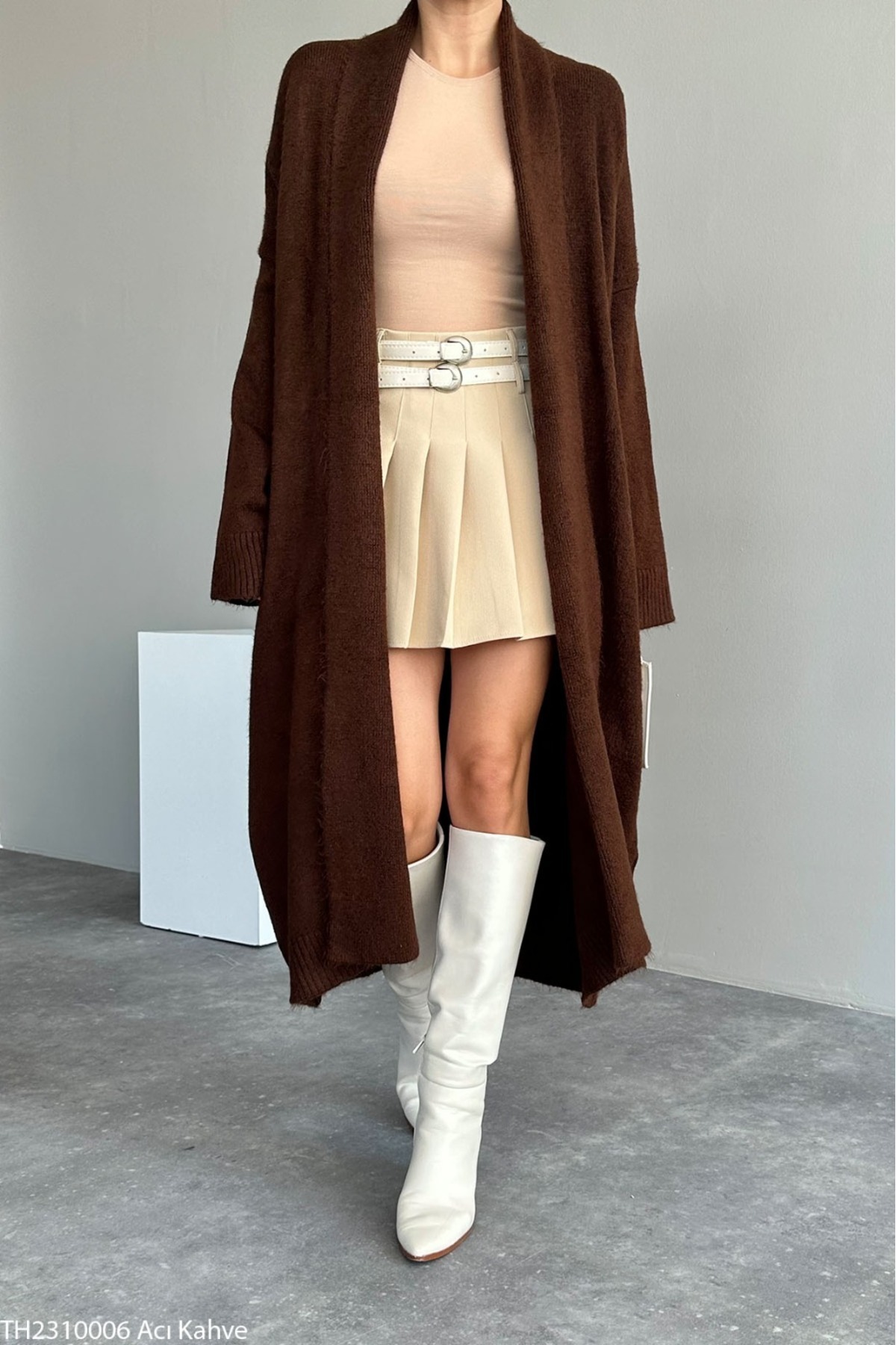 Ürün Özellikleri • Renk: Siyah • Model: Şal yaka, uzun kesim • Kalıp: Oversize / Salaş • Materyal: Yumuşak dokulu triko (%60 akrilik, %40 pamuk) • Sezon: Sonbahar, Kış, İlkbahar geçişi • Stil: Basic – Günlük – Şık Kombin Önerisi Basic tişörtler, mini etekler veya yüksek bel pantolonlarla kombinleyerek şehirli ve sofistike bir görünüm elde edebilirsiniz.