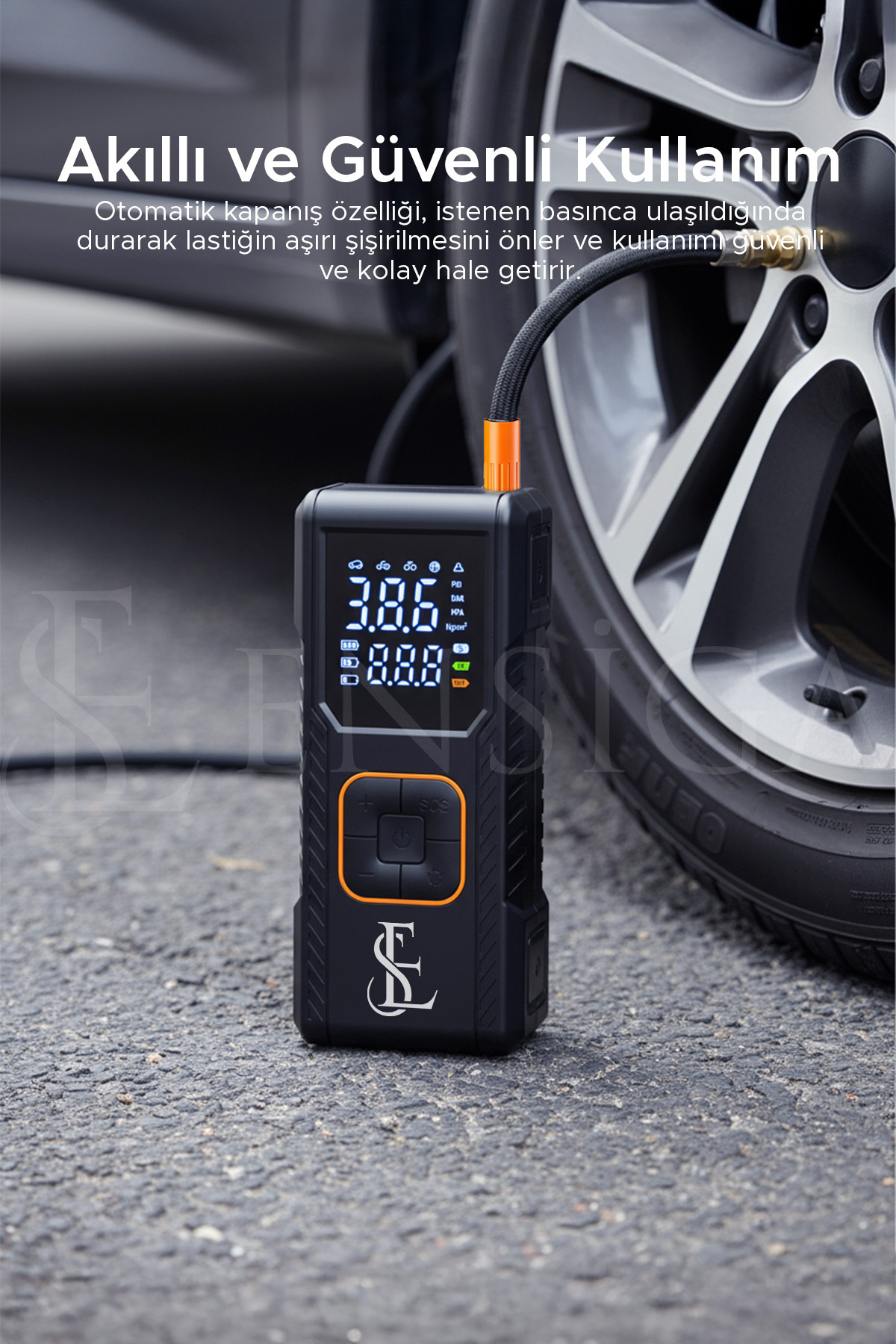 Otomatik Şarjlı 150psi Dijital Gösterge Araba Hava Kompresörü Lastik Pompası şişirme Led Işık