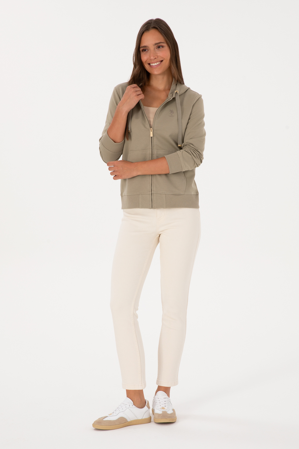 Kadın Açık Haki Fermuarlı Kapüşonlu Sweatshırt 50313594-VR183