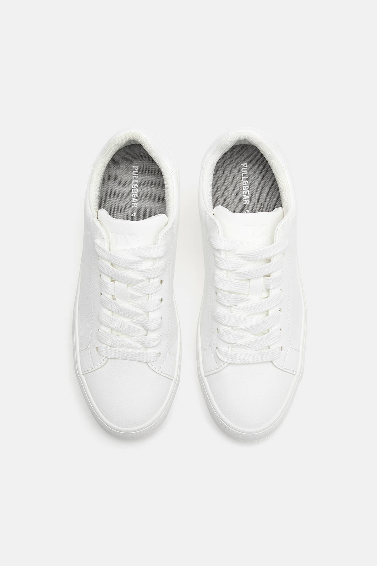 Beyaz renkte bamba tarzı spor ayakkabı.