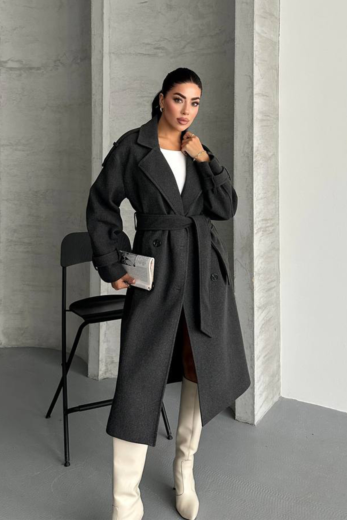 - Kış aylarının vazgeçilmezi, ekru rengindeki bu kaşe kaban, şıklığı ve rahatlığı bir arada sunar.