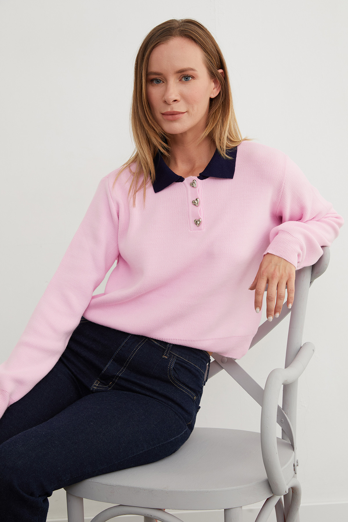 Basic Polo Yaka Yarım Düğmeli Triko Kazak