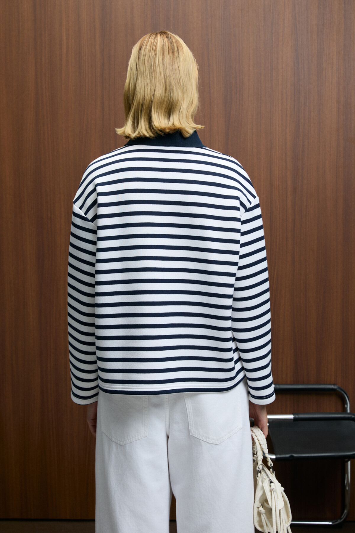 MUSE Kadın Çizgili Triko Polo Yakalı Regular Fit Lacivert Sweatshirt