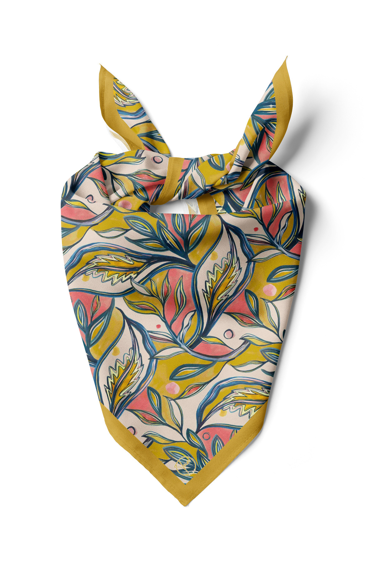 Saçınızı topuz yapmak, bağlamak ya da stilize etmek için ideal bir seçim olan saten bandana, aynı zamanda şal olarak da kullanılabilir.