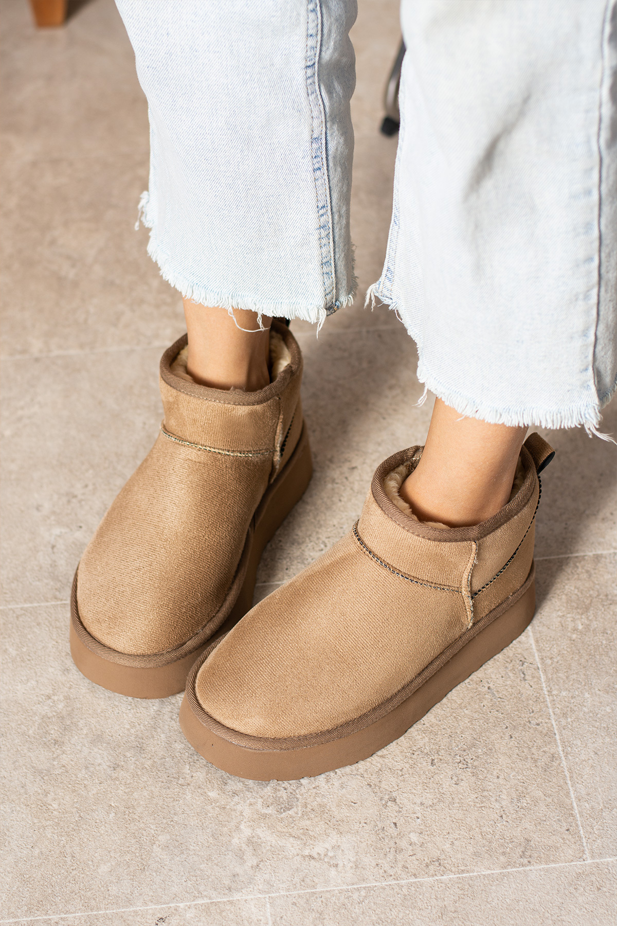 - İç kısmında sıcak tutan kürk astarı, soğuk havalarda ayaklarınızı korur.