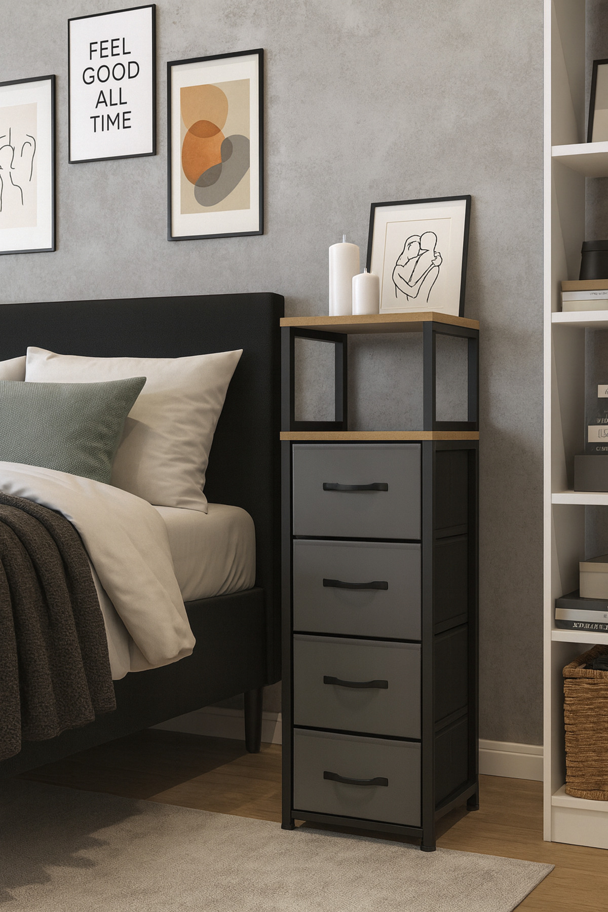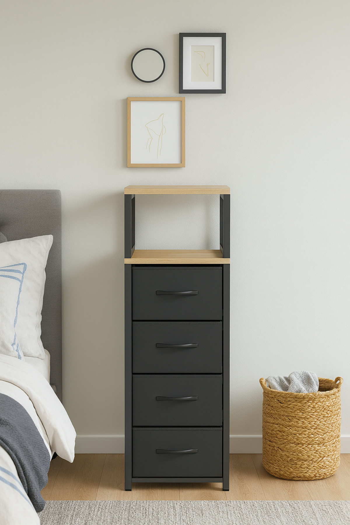 - Dört geniş çekmeceye sahip olması sayesinde kıyafetlerinizden aksesuarlarınıza kadar her türlü eşyanızı düzenli bir şekilde saklamanızı sağlar.