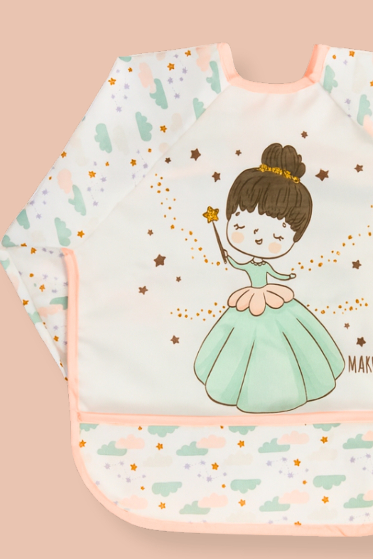 Apronica Prenses Desenli Sıvı Geçirmez Uzun Kollu Mama Ve Aktivite Önlüğü Su Geçirmez Bebek Önlük 6-24 Ay