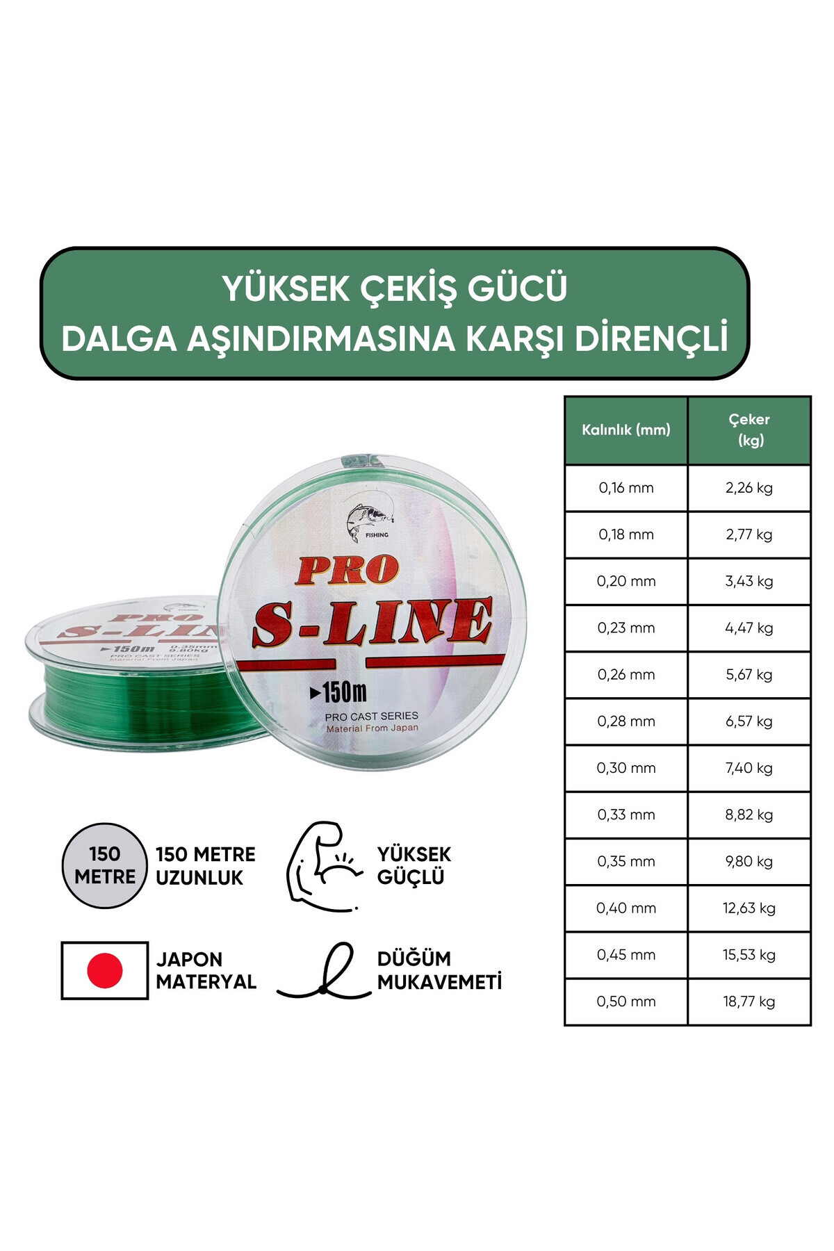 Yeşil Olta Misinası - Japon Materyal - 150 Metre - Pro S-Line - 0,35mm