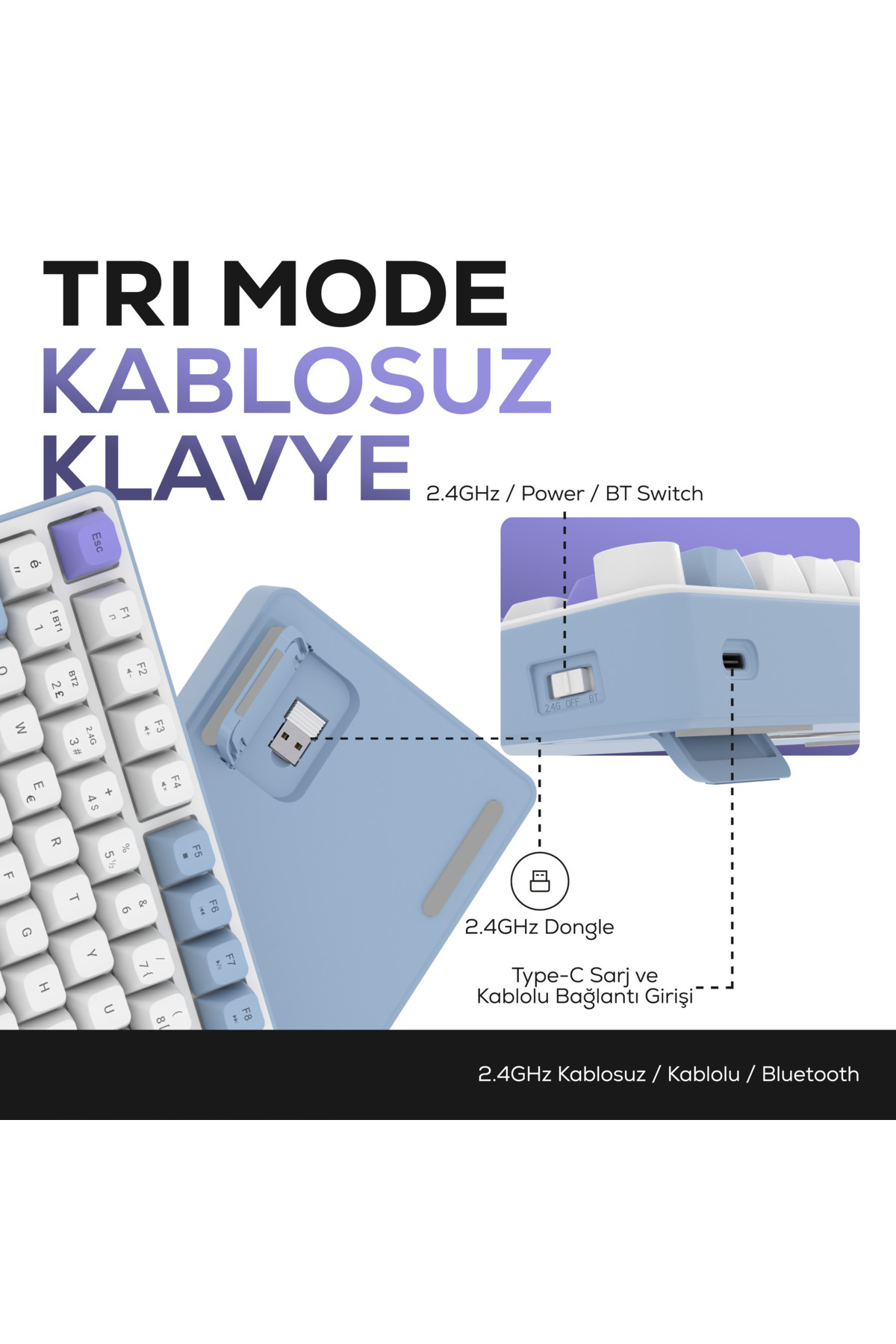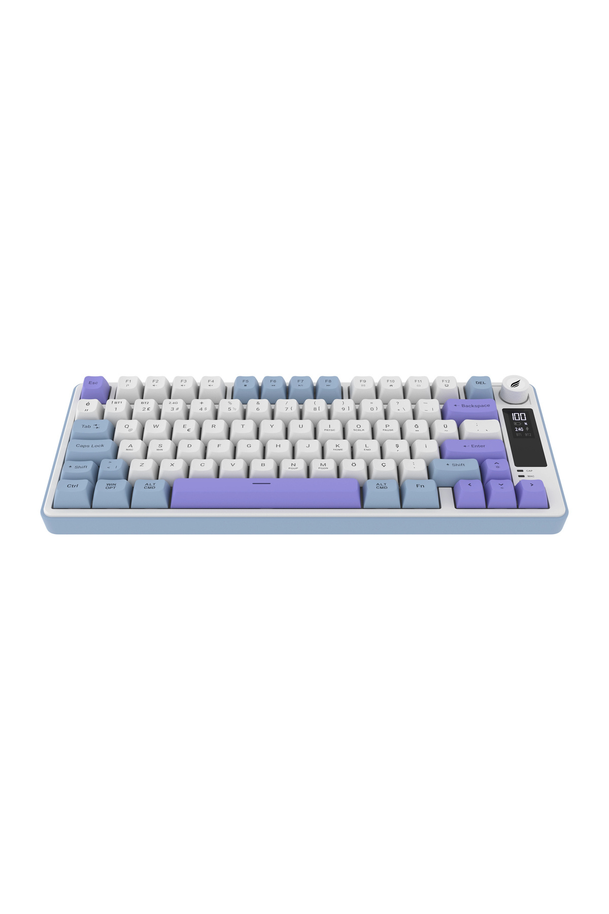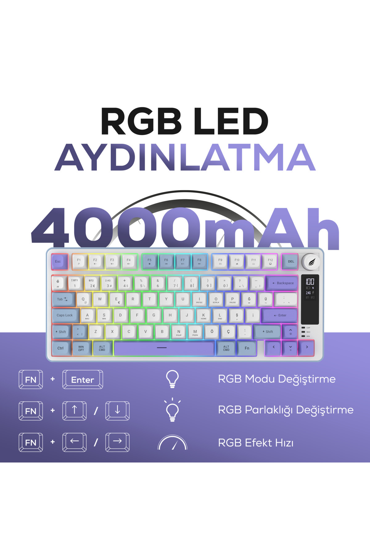 HK255 Membrane LCD RGB Kablosuz/Bluetooth Mavi Mor %75 Türkçe Gaming Oyuncu Klavye