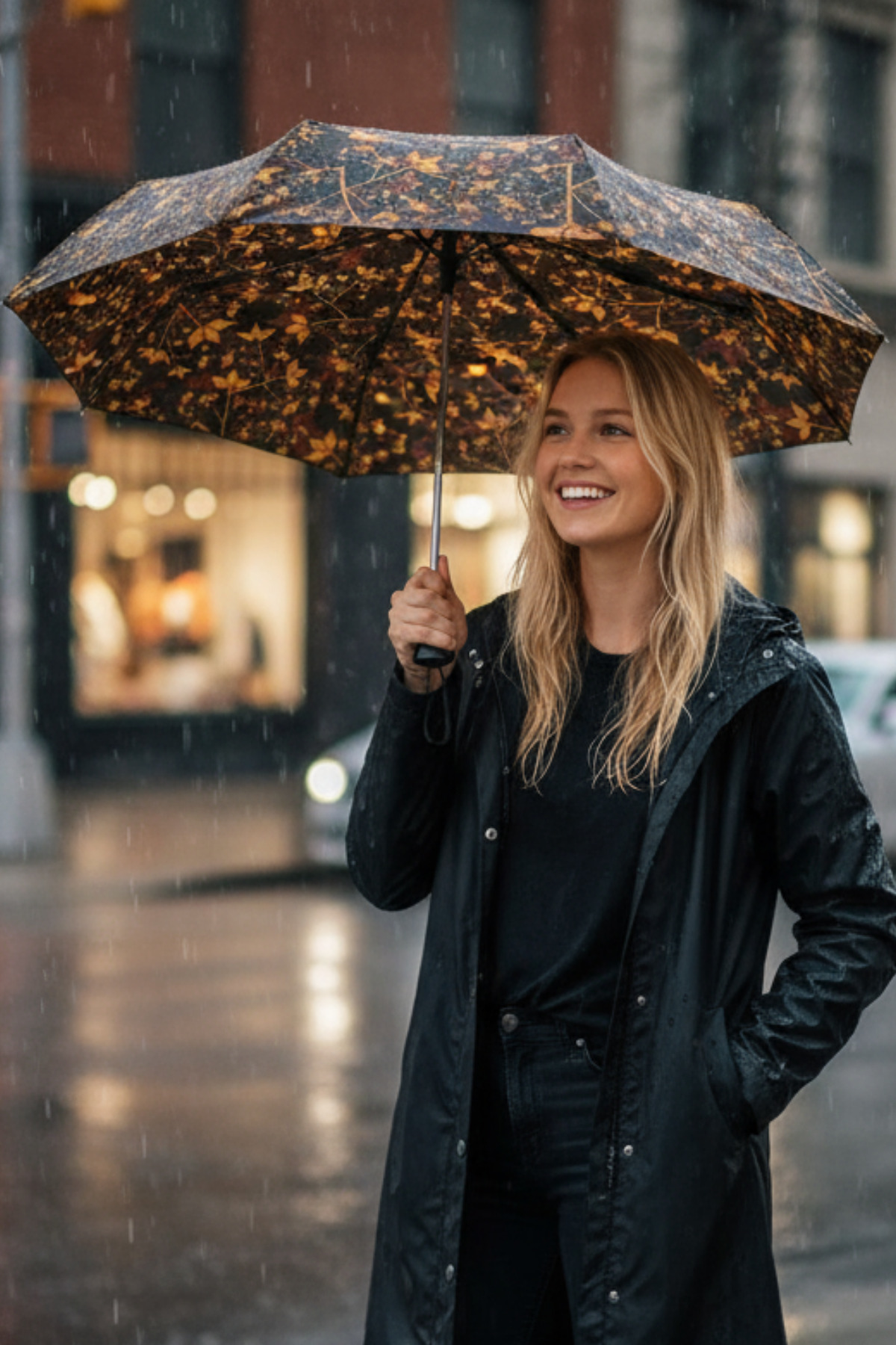 • Şemsiye otomatik olarak kapanır, fakat şaft (gövde) katlanmaz.