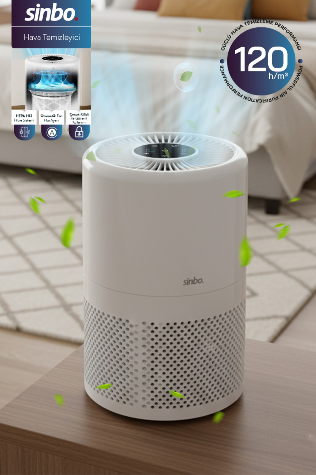 Gelişmiş 3 kademeli HEPA H13 filtreleme sistemi ile evinizdeki havayı toz, polen, duman ve kötü kokulardan arındırarak %99.97 oranında temizler. 120 m³/saat CADR performansı ile yüksek verim sunar. Akıllı hava kalitesi sensörü ve 3 renkli LED göstergesi sayesinde ortam havasının durumunu sürekli takip edebilirsiniz. Uyku modu ile gece boyunca sessiz ve konforlu bir kullanım sağlar. Zaman ayarlı otomatik kapanma, filtre değişim uyarısı ve çocuk kilidi gibi güvenli ve pratik özelliklerle donatılmıştır. Şık ve kompakt tasarımı ile evinize modern bir dokunuş katarken, düşük enerji tüketimiyle ekonomik bir kullanım sunar.