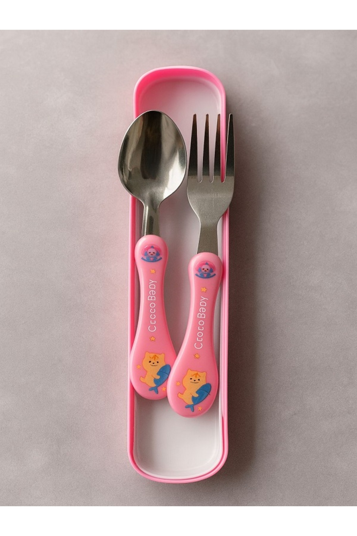 Çocuk Silikon Saplı Figürlü Metal Uçlu Kaşık ve Çatal - Mama Kaşığı Seti-(Karışık Gönderilmektedir)