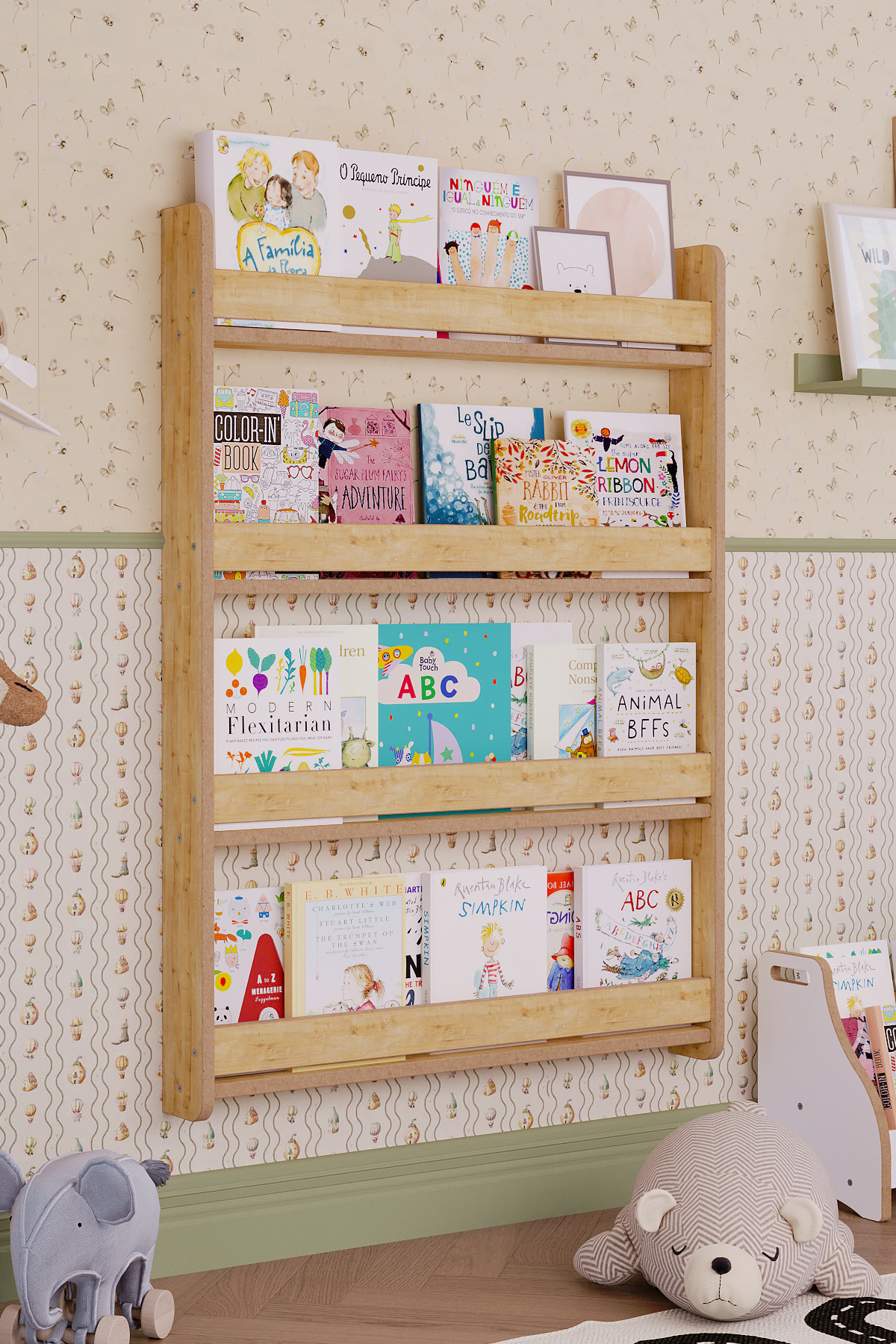 Çocuk Odası Kitaplık 4 Katlı 80x110 Montessori Çocuk Kitaplık - Safir Meşe