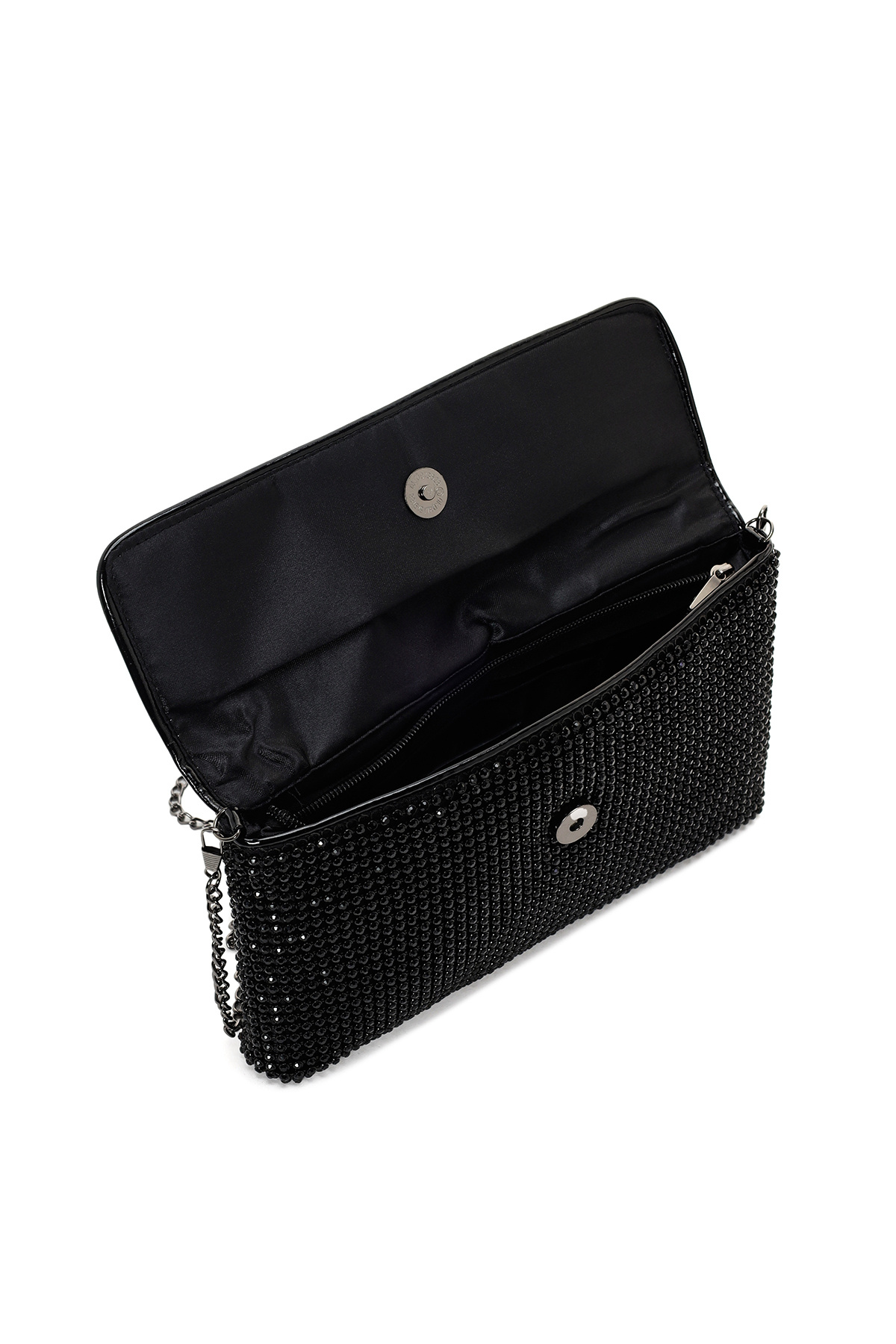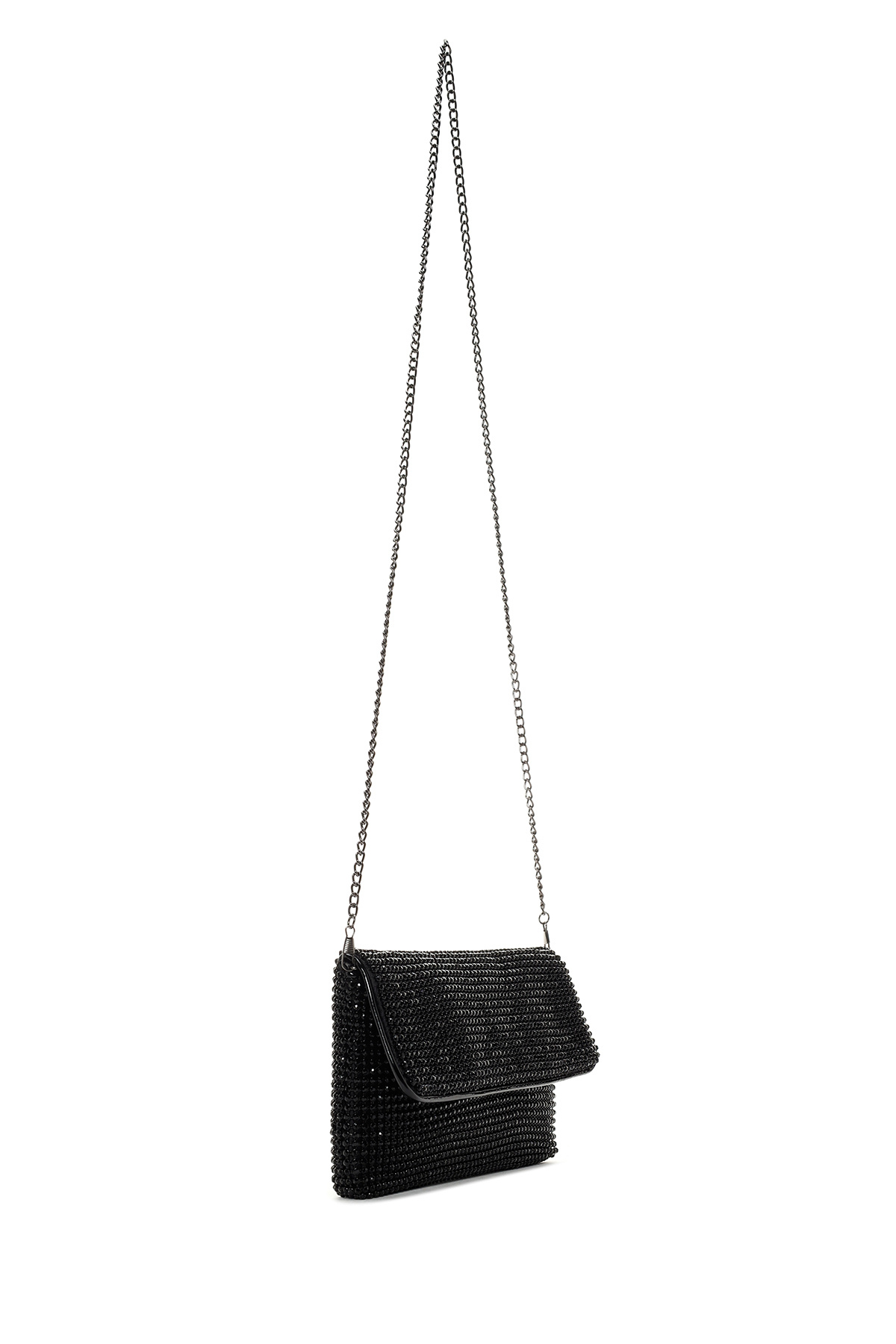 Kadın Siyah Zincir Askılı Taşlı Abiye Mini Portföy Çanta