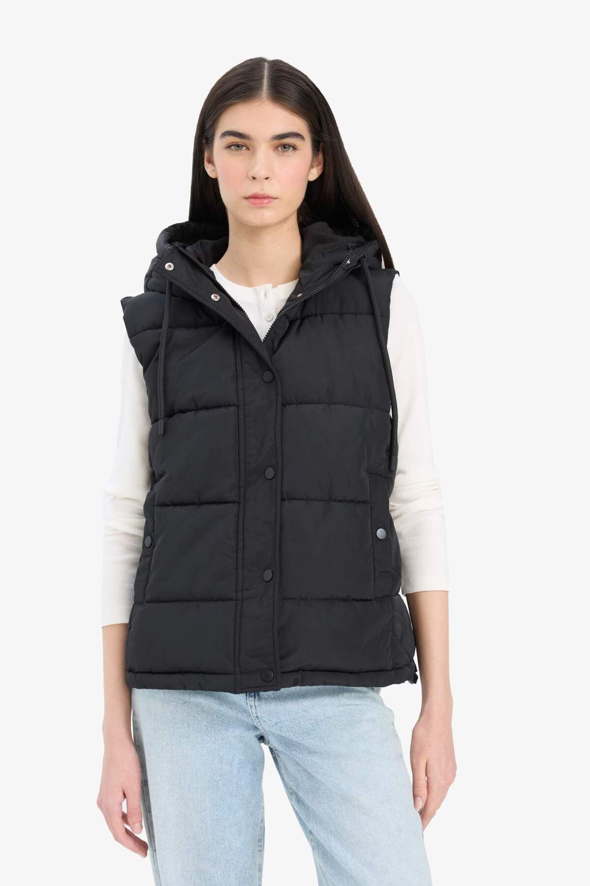 Regular fit kesimi ve kapüşonlu fermuarlı tasarımıyla bu şişme yelek, soğuk havalarda sıcaklık ve rahatlık sunar.