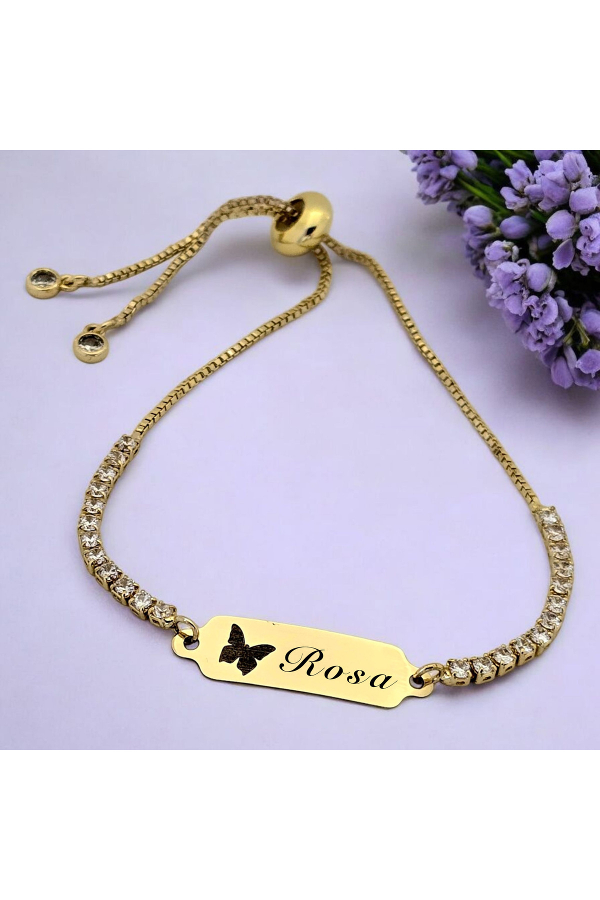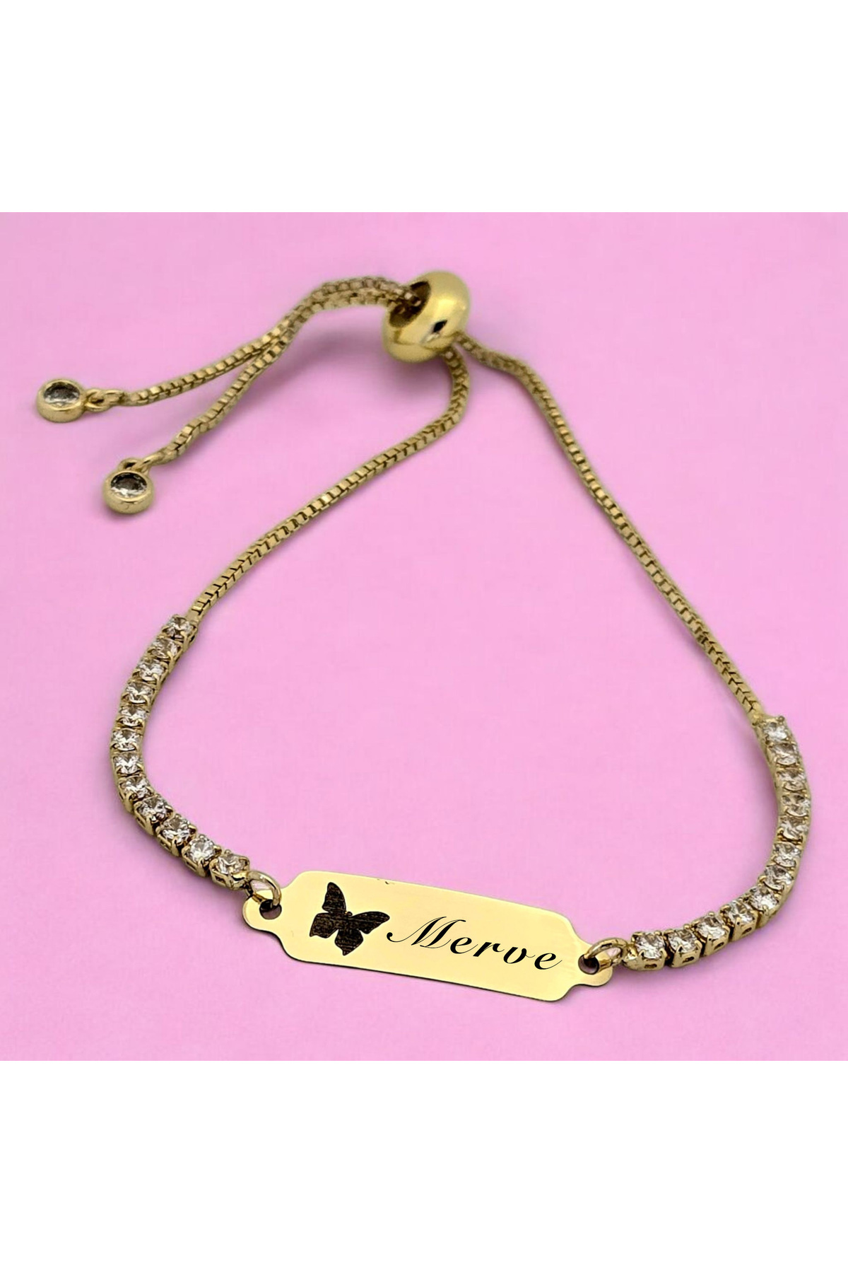 ,,,,,,,,, Taş Cinsi: Zirkon doğal taş ,,,,,,,,, Zincir: Paslanmaz çelik ,,,,,,,,, Tasarım: Kelebek figürlü ve beyaz taş desenli ,,,,,,,,, Kişiselleştirme: Plaka üzerine kişiye özel isim, harf ve sembol yazılabilir ,,,,,,,,, Hediye Seçeneği: Özel tasarımıyla kişiye özel, anlamlı bir hediye ,,,,,,,,, Kullanım Alanı: Günlük kullanım ve özel günler için uygundur ,,,,,,,,, Üretim: El yapımı olup özenle tasarlanmıştır ,,,,,,,,, Cinsiyet: Kadınlar için uygundur ,,,,,,,,, Kapanış Tipi: Ayarlanabilir asansörlü kilit mekanizması ,,,,,,,,, Ağırlık: Dayanıklı ve konforlu kullanım için idealdir ,,,,,,,,, Bilekliğin Uzunluk Ölçüsü: Plakalı 24 cm, Plakasız 21 cm — Önemli Not: Bilekliğin uzunluk ölçüsü, el yapımı olması nedeniyle yaklaşık ±1 cm toleransa sahiptir ve kolayca ayarlanabilir.