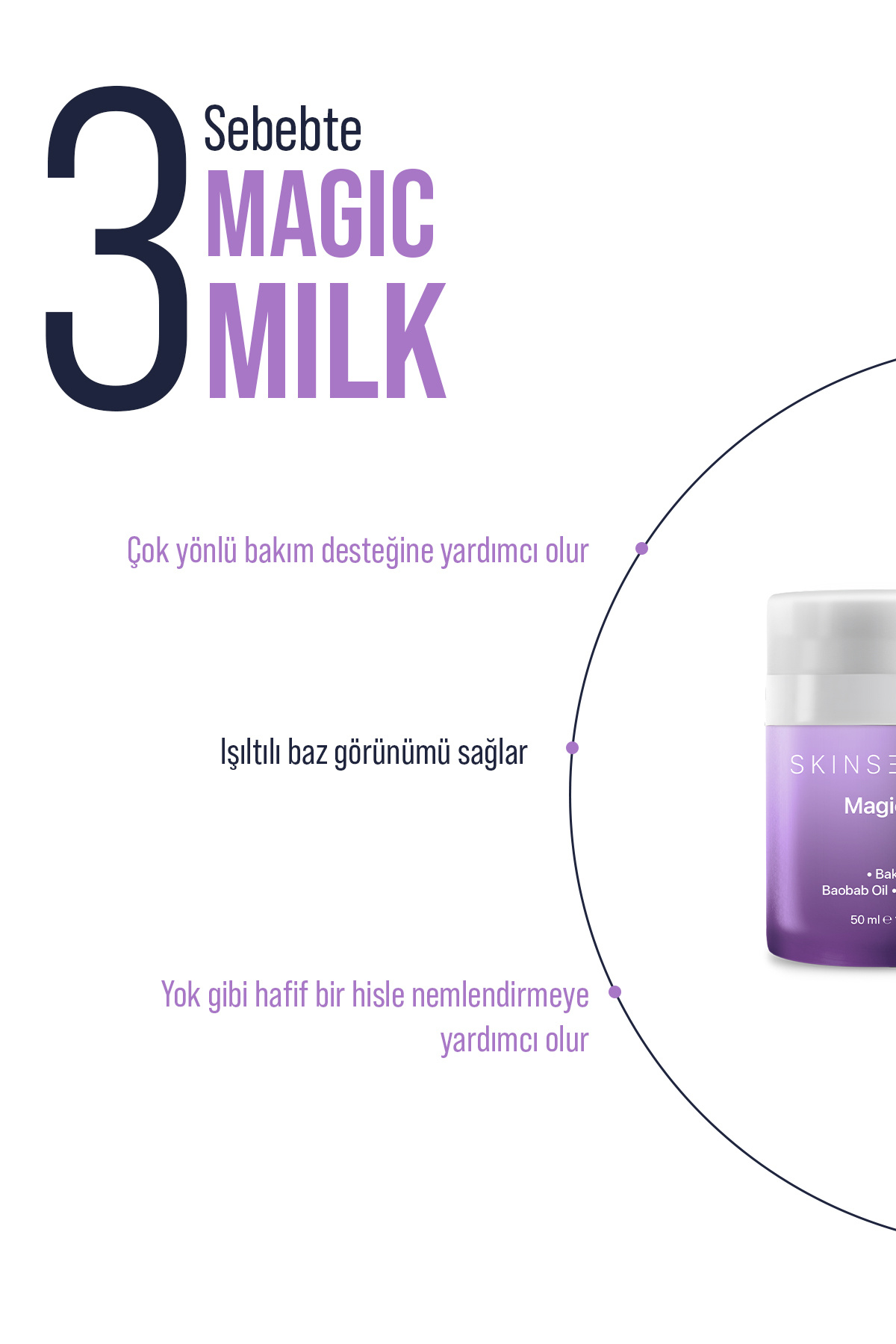 Magic Milk 3-in-1: Base & Mouisturizer & Mask Çok yönlü bakım desteğine yardımcı olur.