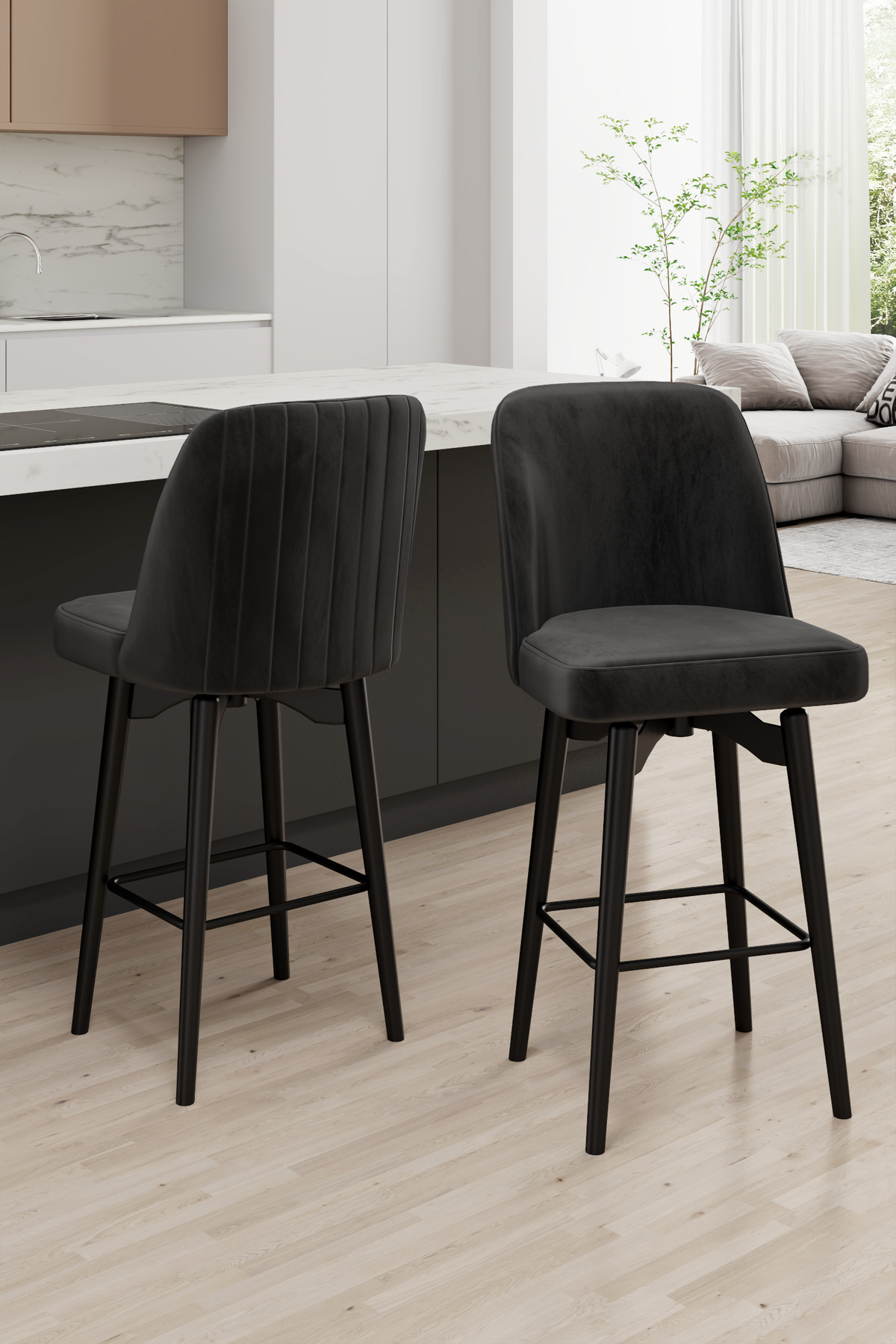 Evax Serisi 1 Adet Siyah Bar Sandalyesi 360°c Döner Bar Sandalyesi Babyface Kumaş Siyah Metal Ayaklı