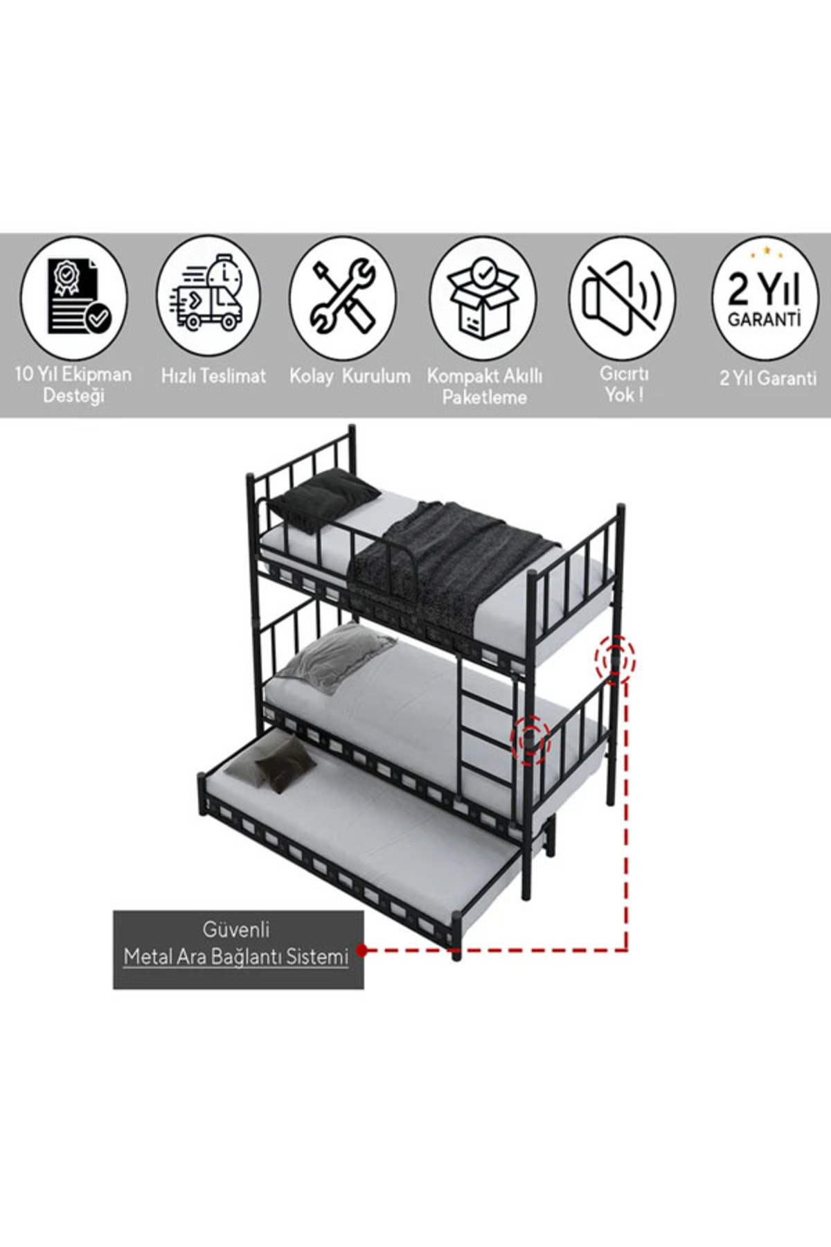 Argimo Zambak Yavrulu Genç Çocuk Odası Metal Ranza ve Karyola 90 x 190 Beyaz