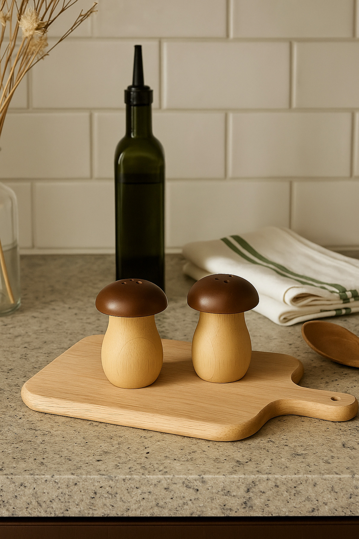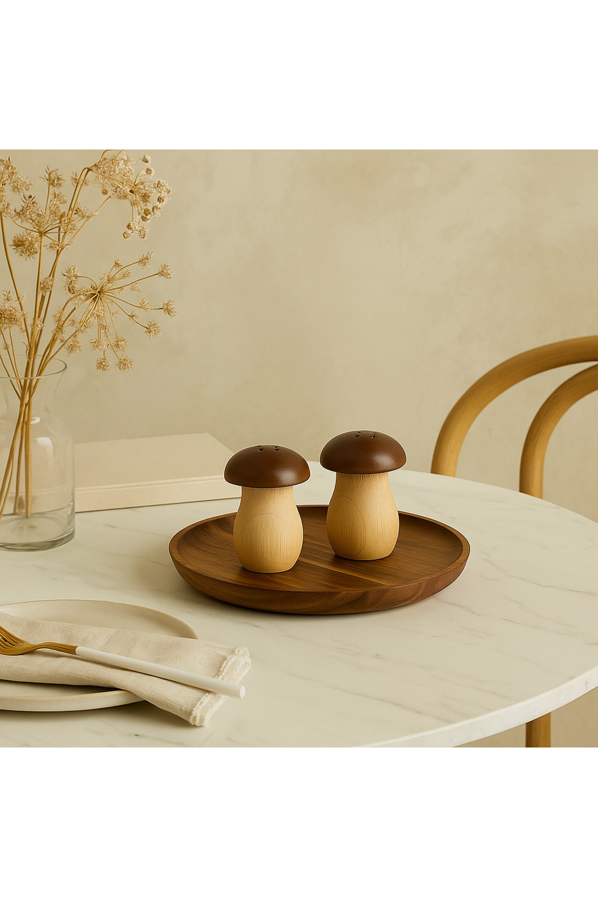 Mantar Tuzluk Biberlik 2'li (Doğal Bambu)