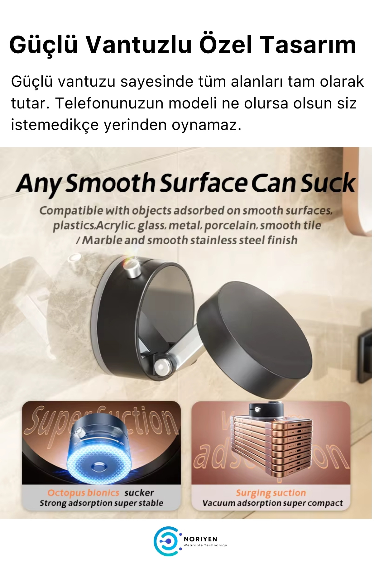 Noriyen Premium Seri 360 Derece Rotasyon Güçlü Manyetik Vakumlu Ayna Cam Konsol İçin Araba Telefon Tutucu