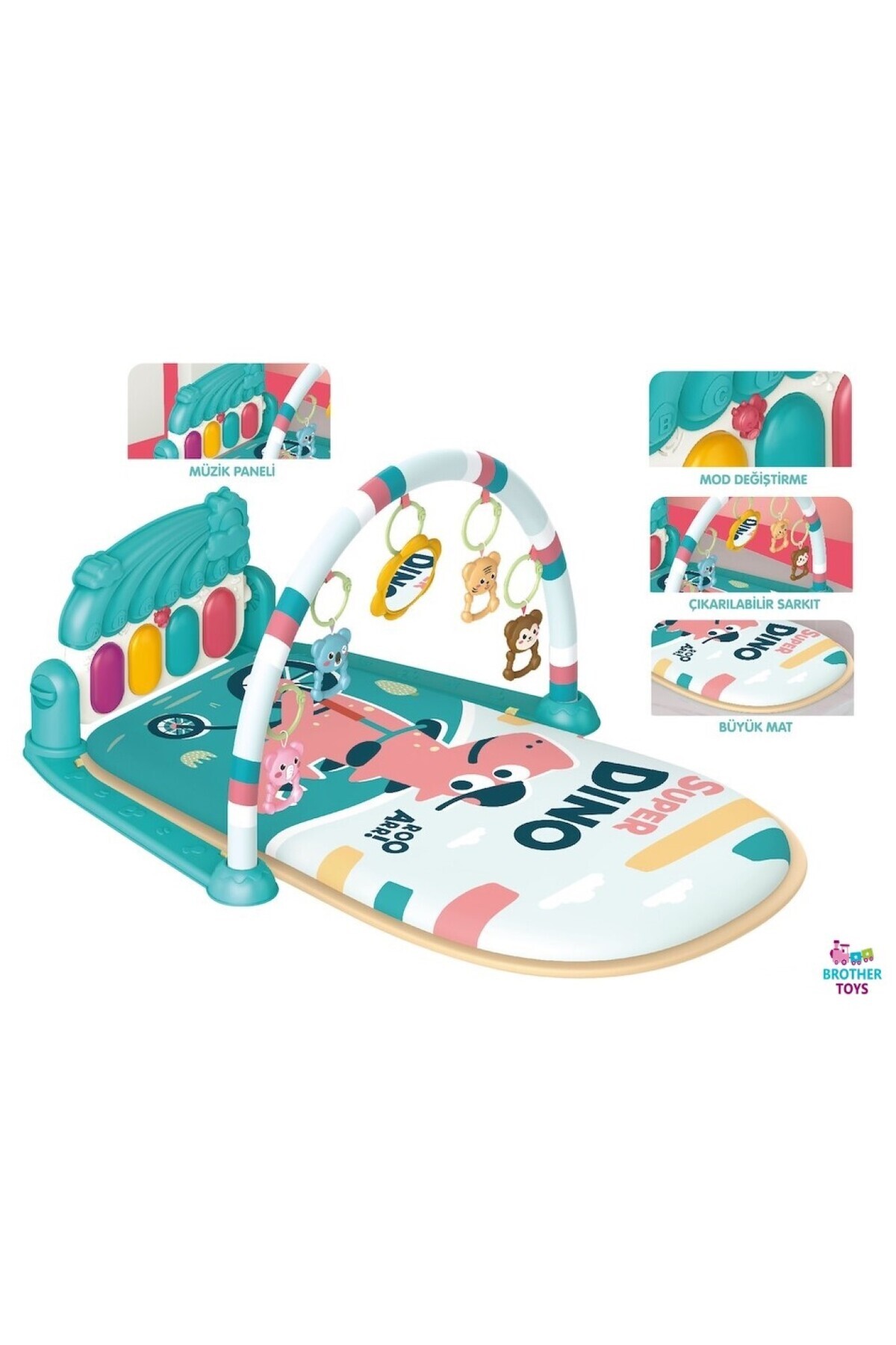 Piyanolu Dinozor Desenli Işıklı Aynalı Sevimli Oyun Halısı Aktivite Matı Oyuncak 75x52