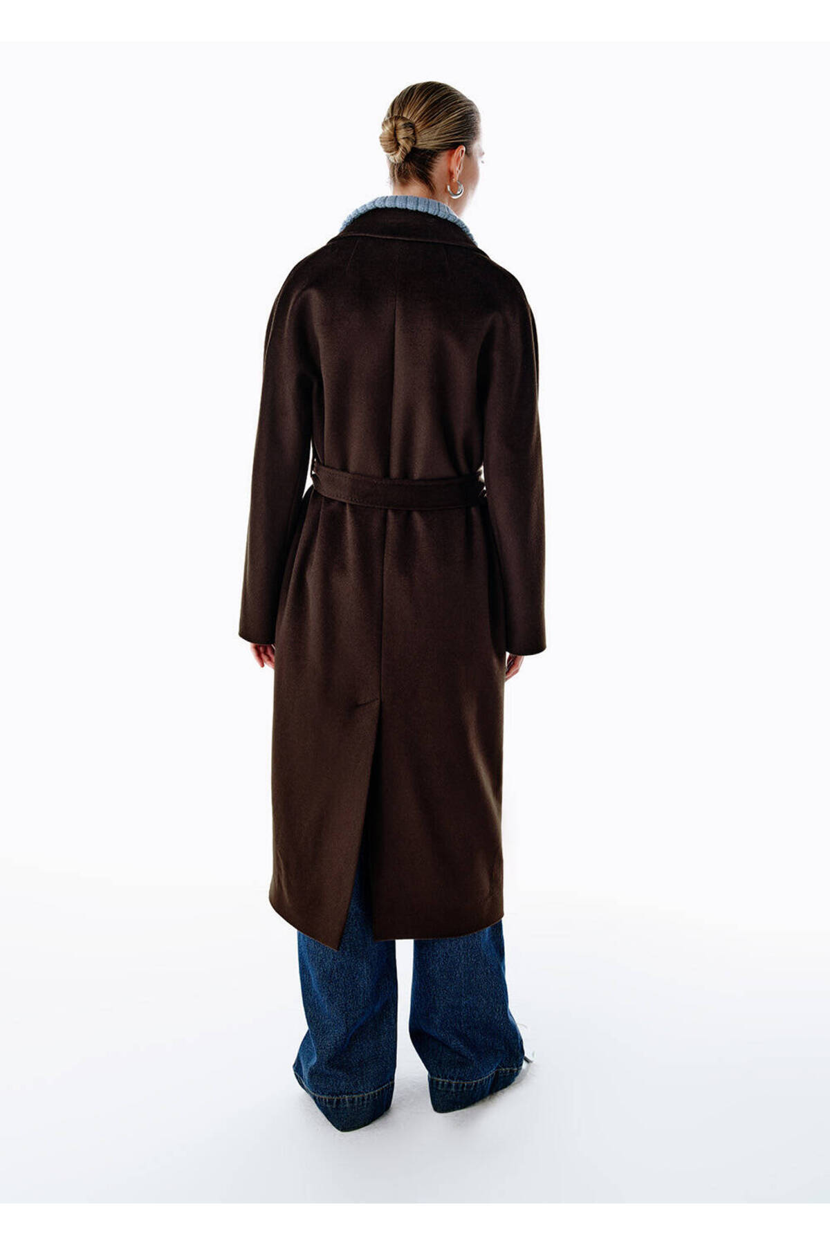 Regular Fıt Yün Kaban Koyu Kahverengi
