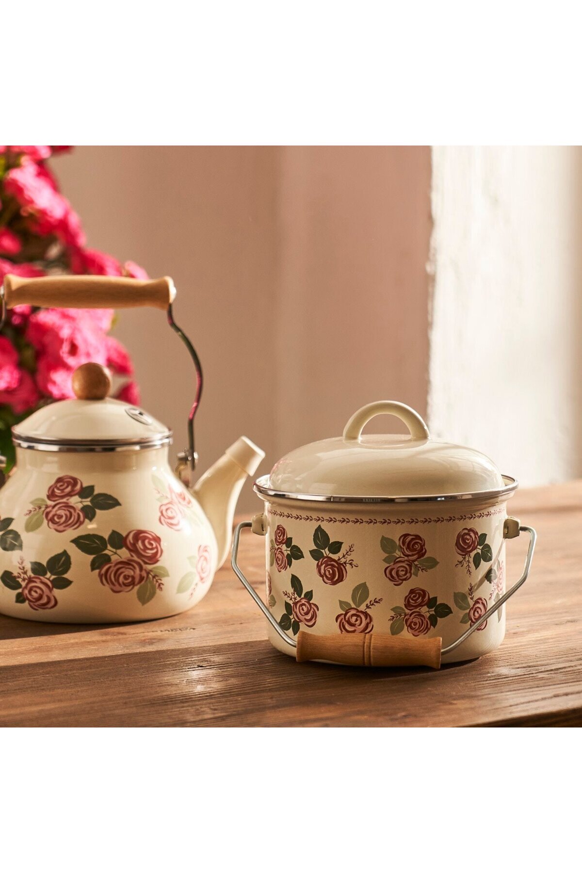 Rose koleksiyonuna ait emaye kaplamalı desenli demliktir.