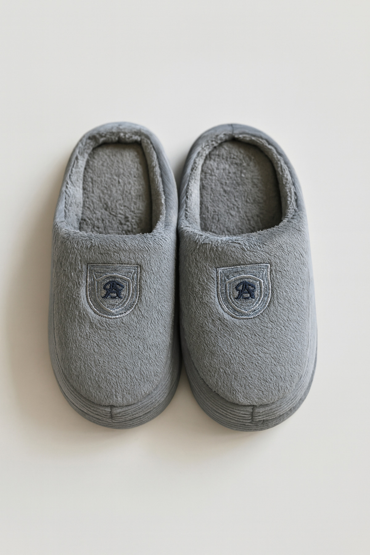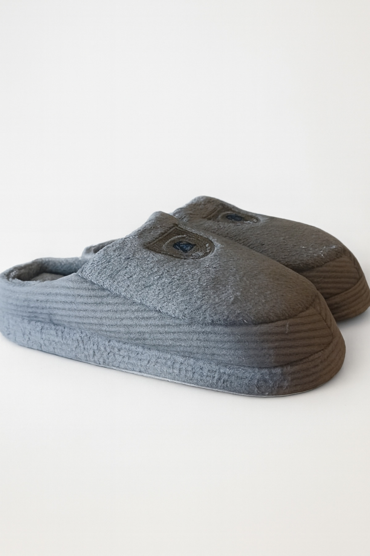Hem dayanıklı hem estetik: Gri erkek ev terliği, peluş yapısıyla sıcacık bir kullanım deneyimi sunar.