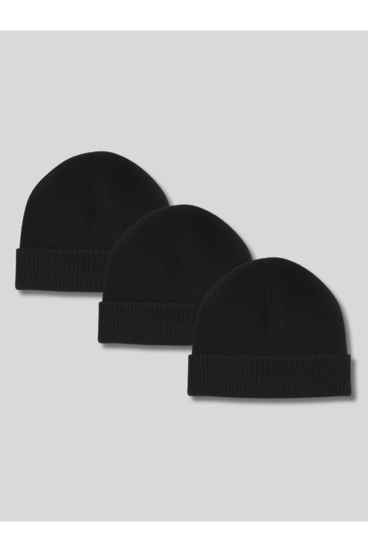 - 3'Lü Unisex Siyah Renk Basic Katlamalı Bere.