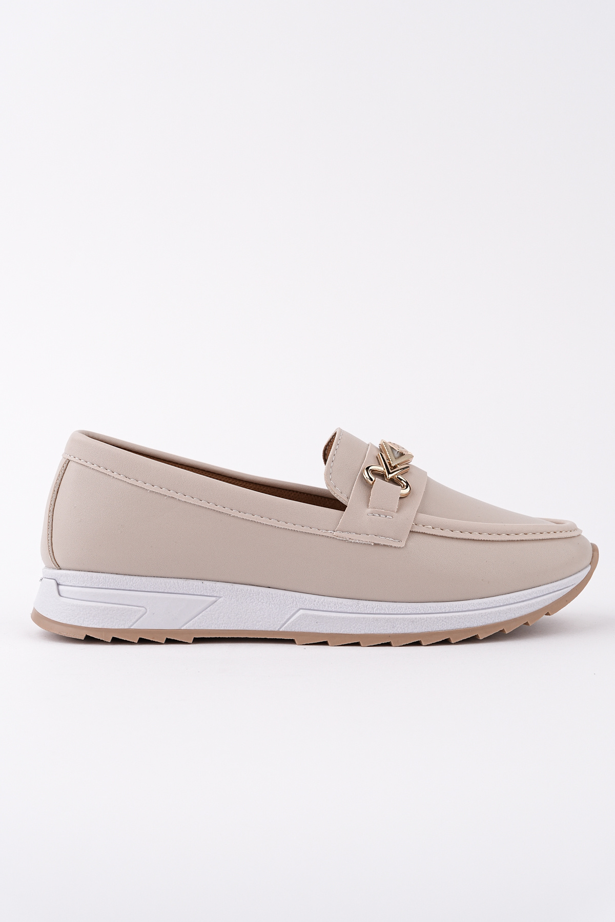 Düz topuklu tasarımıyla ayak sağlığını desteklerken, suni deriden üretilen dış yüzey kalitesiyle dikkat çeker.
