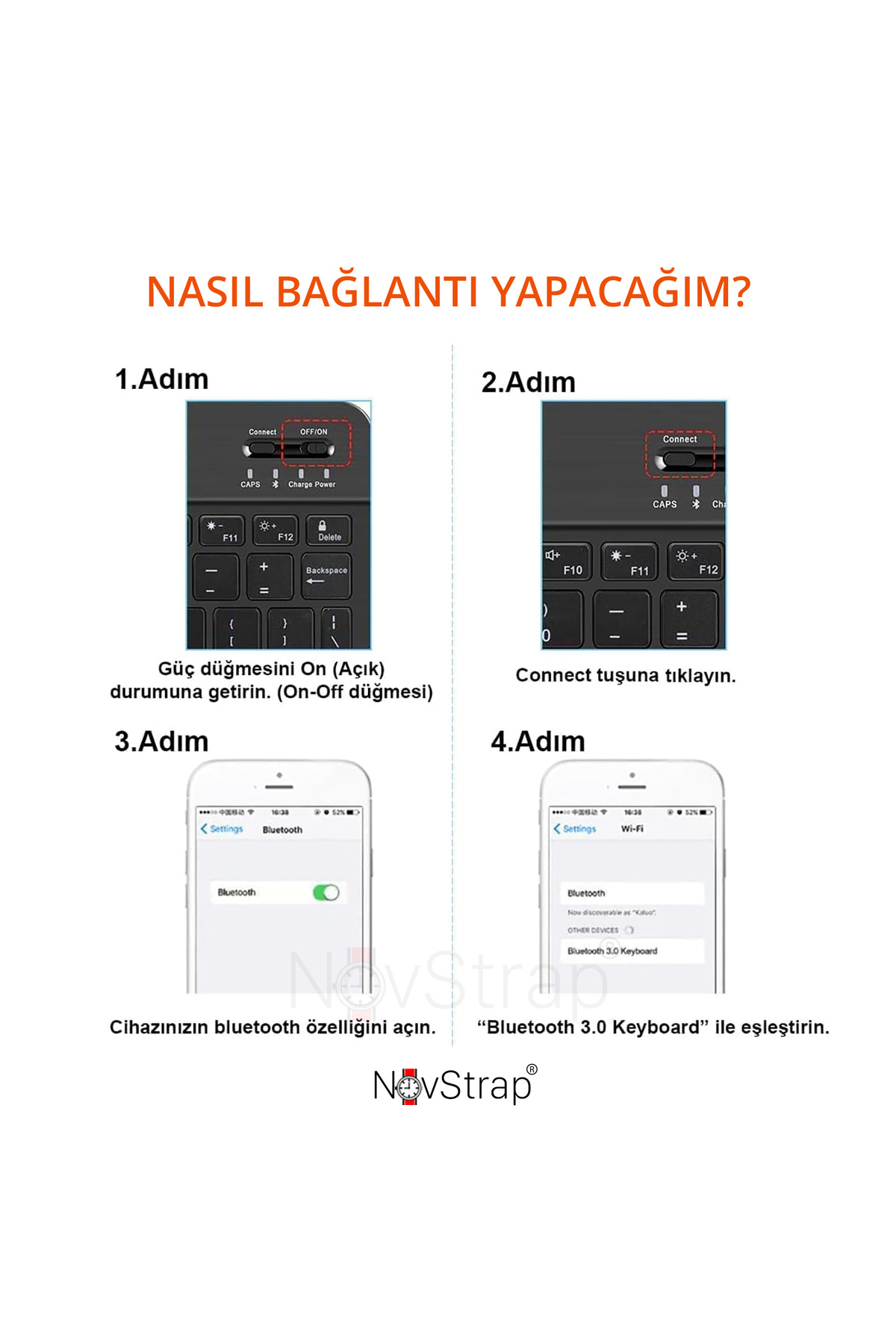 Bu kılıf, sadece bluetooth özelliği olan tablet, telefon ve bilgisayarlar ile uyumludur.