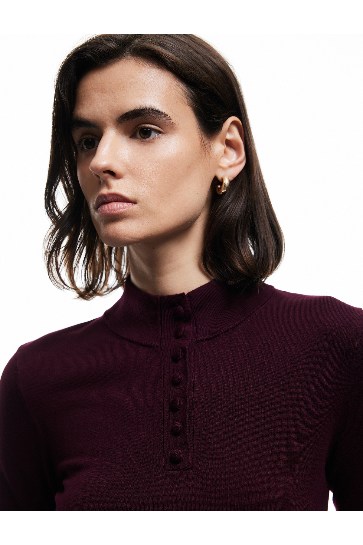 Hafif Dik Yaka Yarım Düğme Detaylı Uzun Kollu Triko Basic Kazak