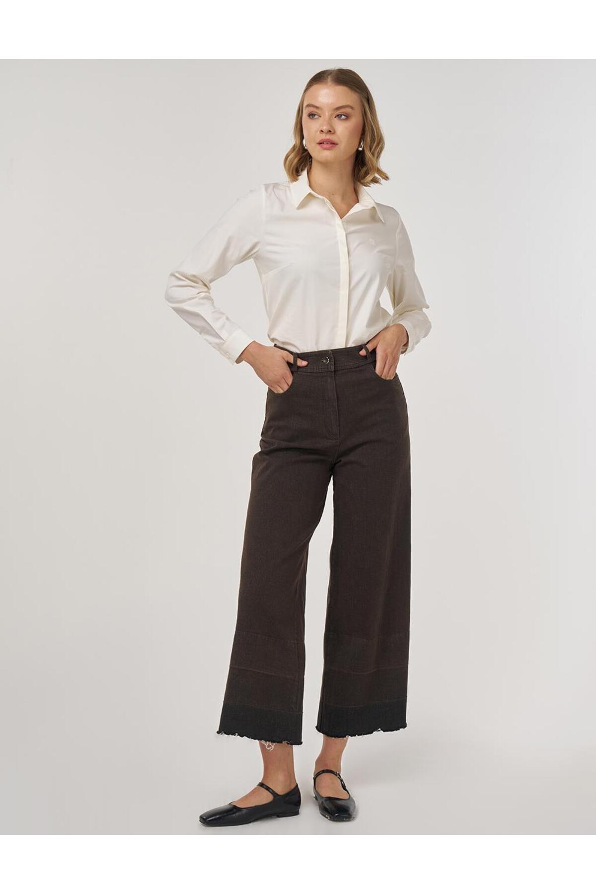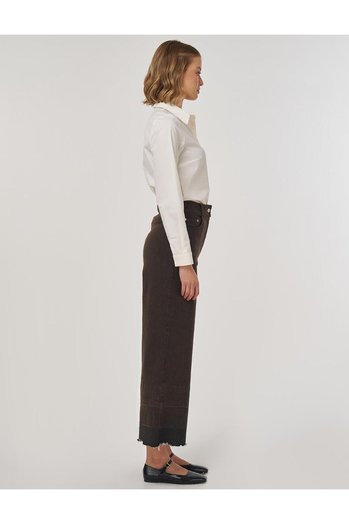 Cep Detaylı Marine Fit Denim Pantolon Koyu Kahve