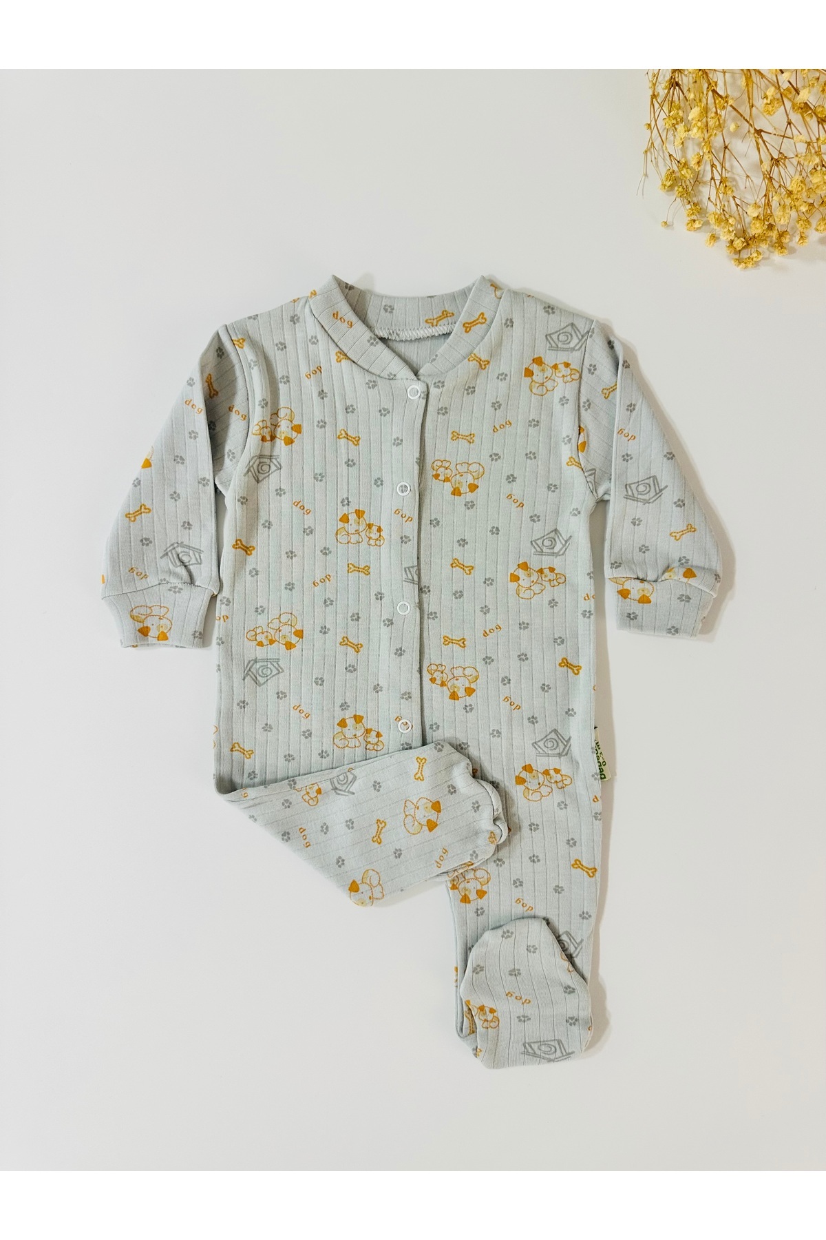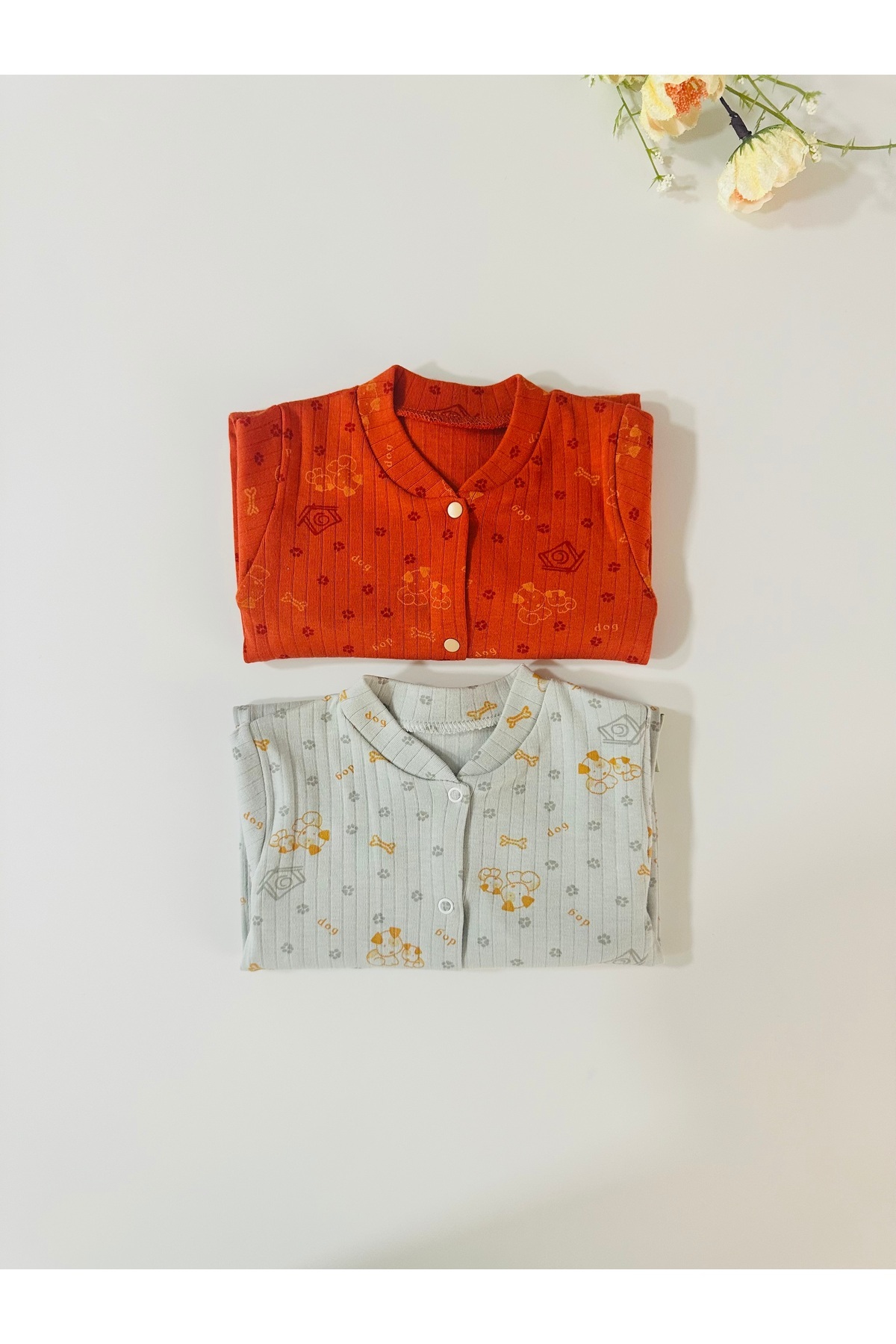 %100 Organik Pamuk Bebek Tulum 2’li Set Gri & Kiremit Uzun Kollu
