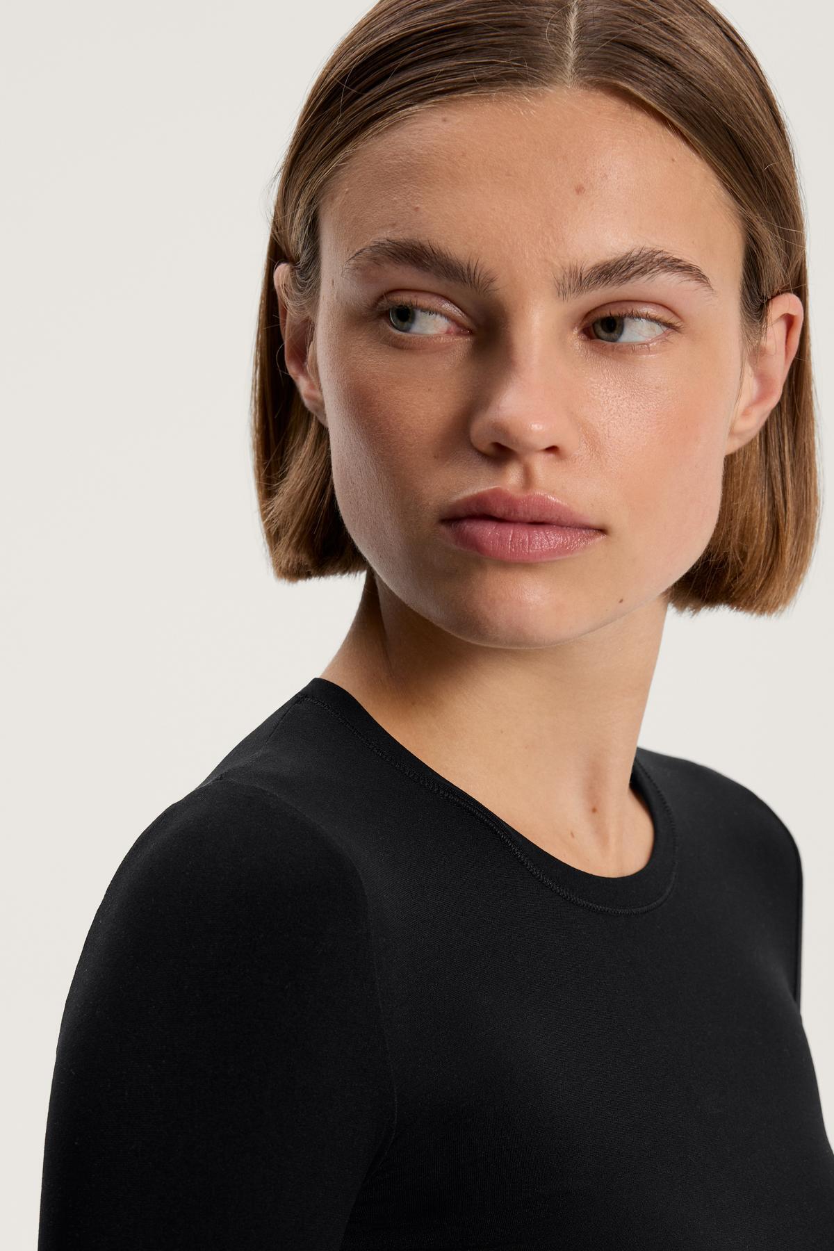 Sıcak dokunuşlu ilk katmanlı, uzun kollu ve yuvarlak yakalı dikişsiz içlik T-shirt.