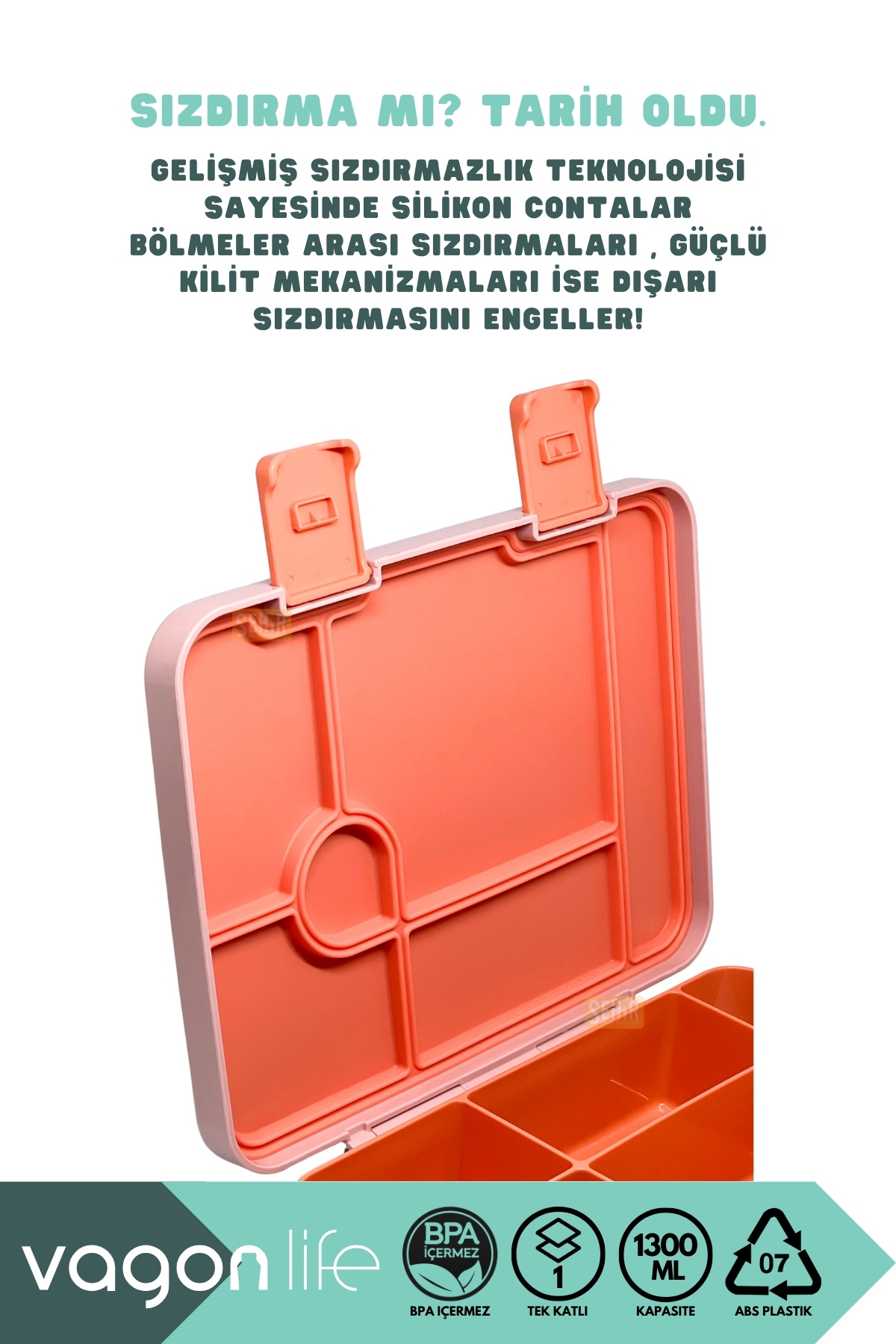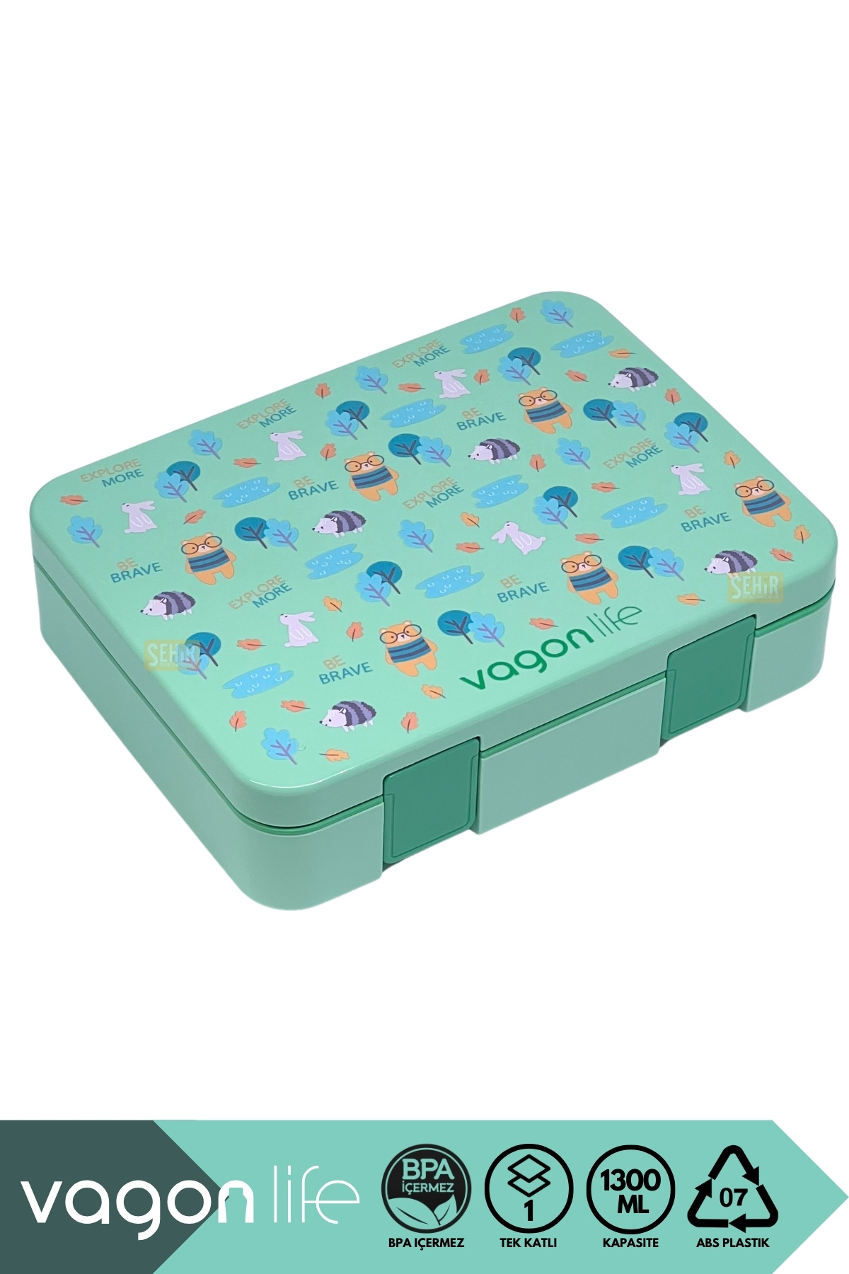 Bento 1300ml Lunchbox Yeni Koleksiyon Tek Katlı 4 Bölmeli ABS Plastik Çocuk Sefer Tası Yemek Kutusu