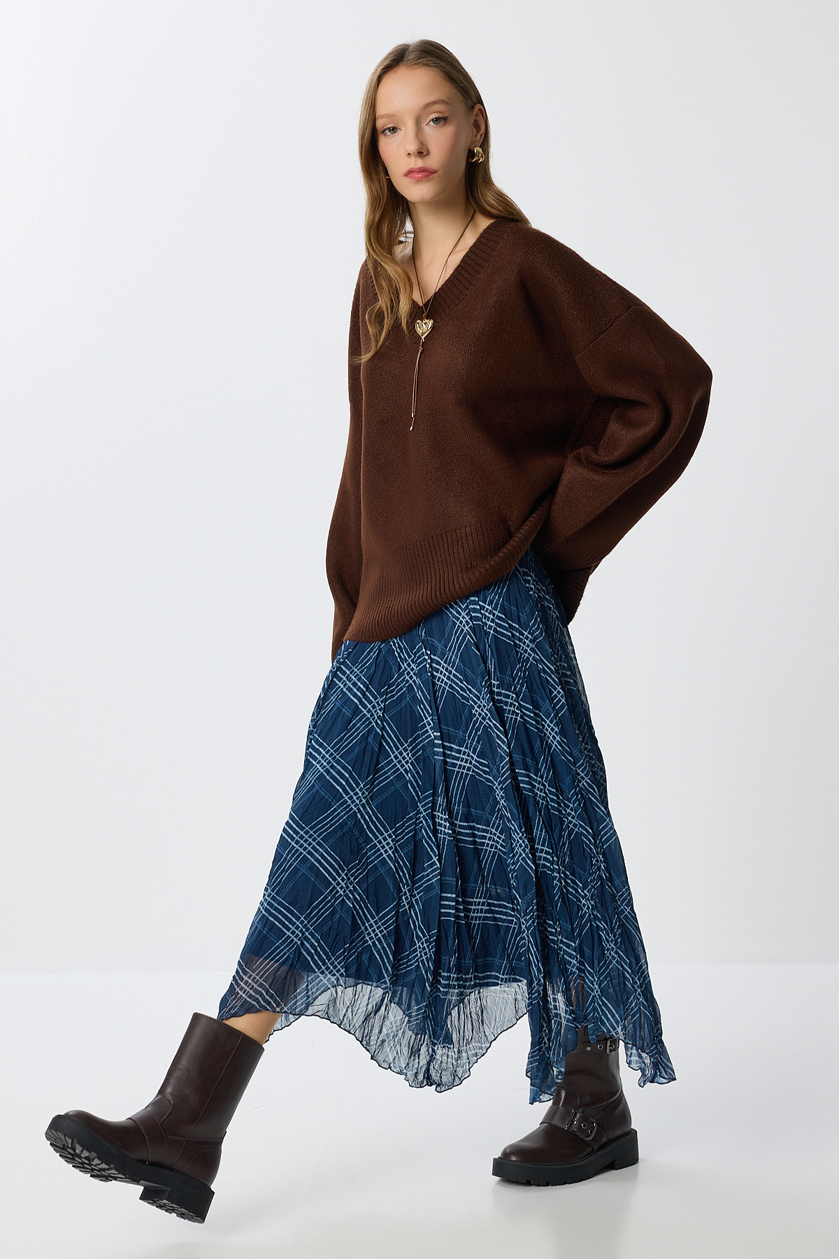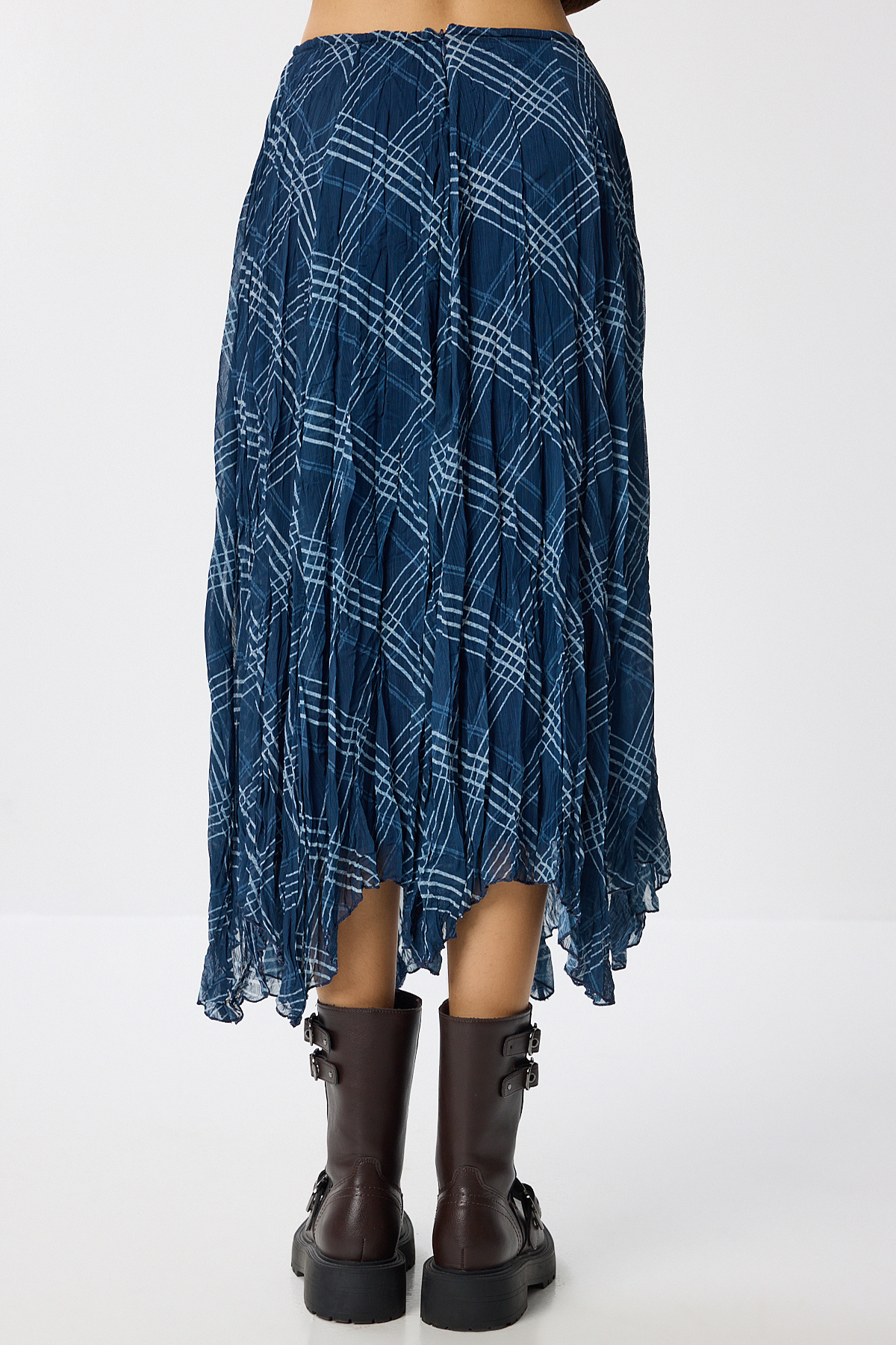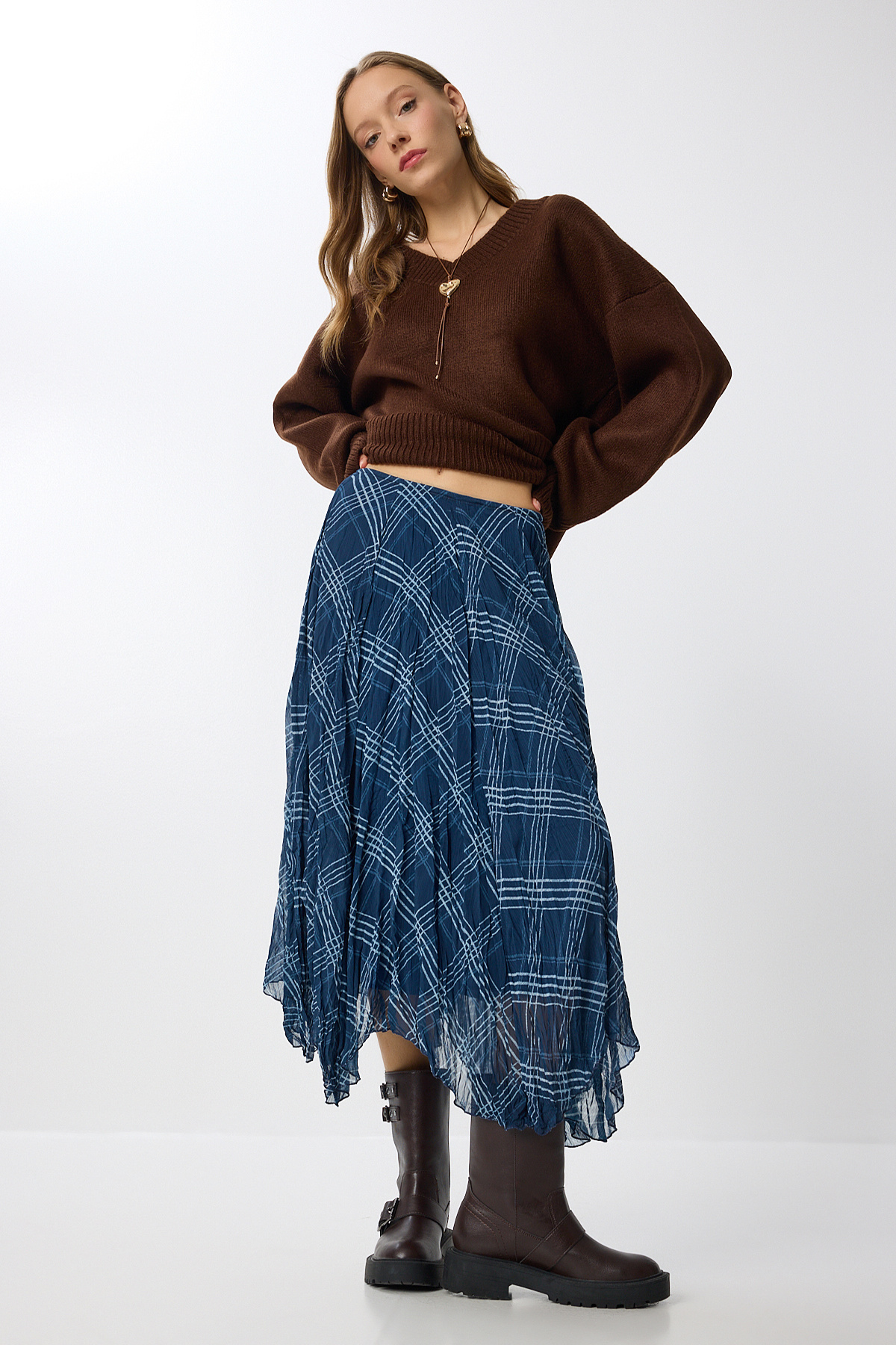 Desenli Kırışık Efektli Midi Şifon Etek LNS0082 LACİVERT