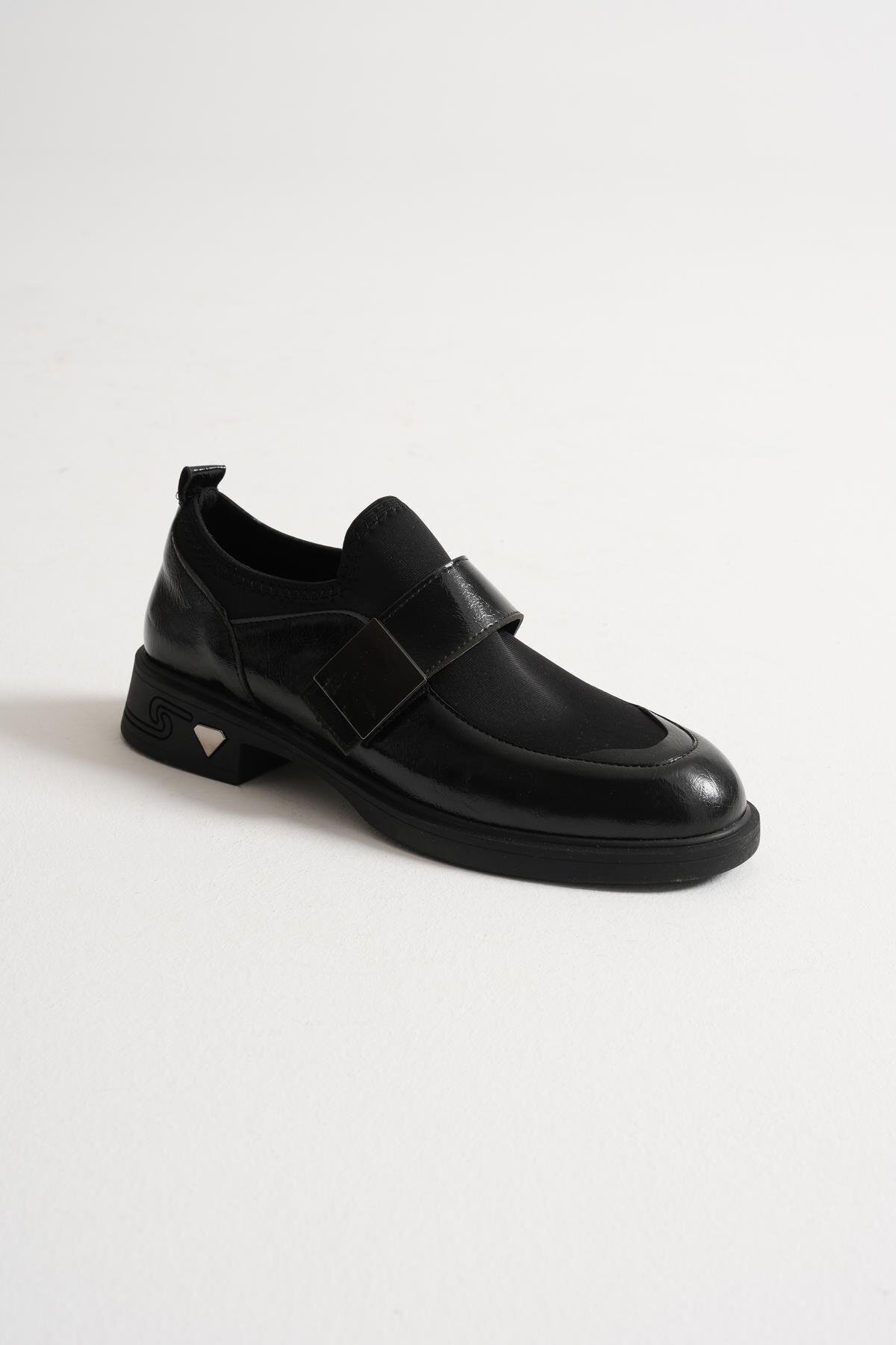 Elina Kadın Siyah Rugan Streçli Metal Aksesuarlı Cırt Detay Günlük Ayakkabı