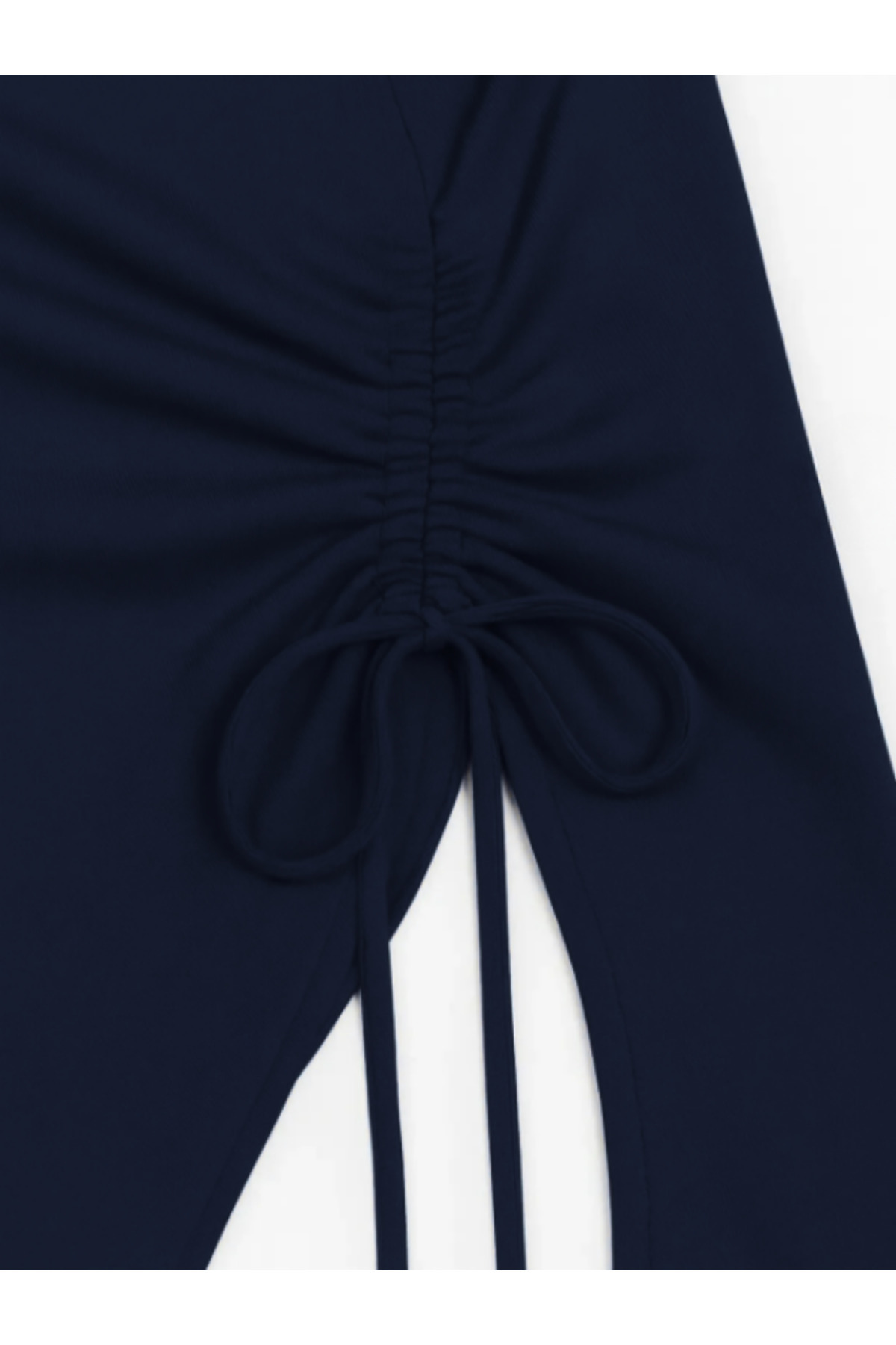 - Büzgü ve drapeli tasarımı sayesinde vücut hatlarını nazikçe sararak feminen bir duruş sağlar.