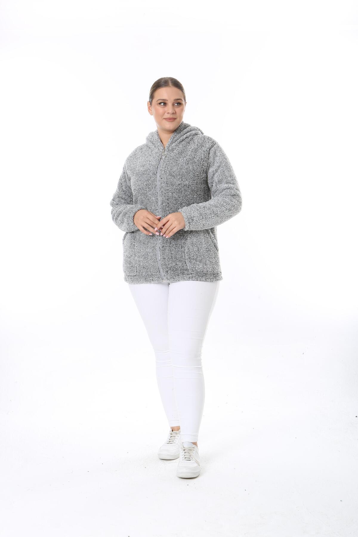 • - Rahat kesimi ile günlük kullanım için ideal, büyük beden kapşonlu polar hırka.