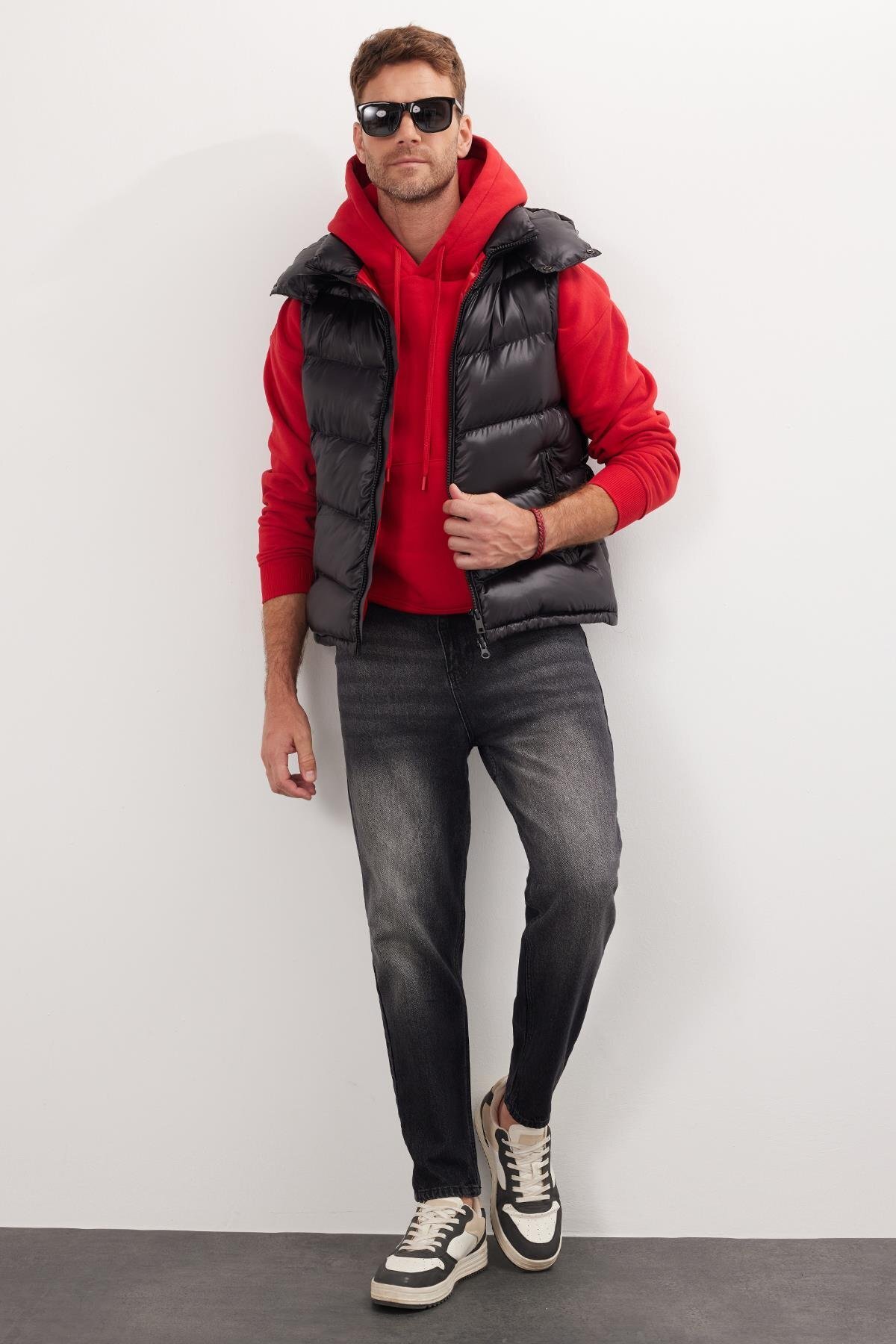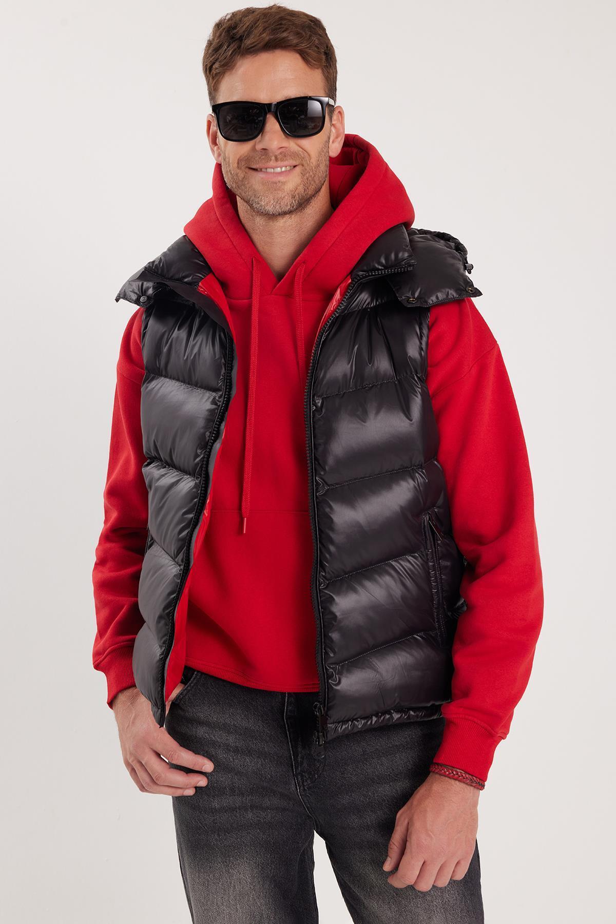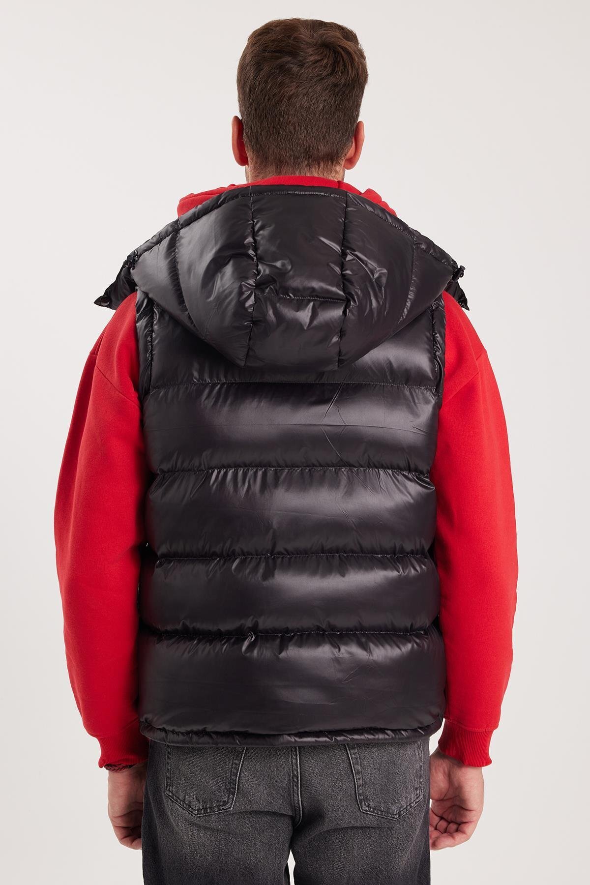 Erkek Standart Fit Normal Kesim Sıfır Kol Çift Cepli Fermuarlı Siyah Şişme Yelek